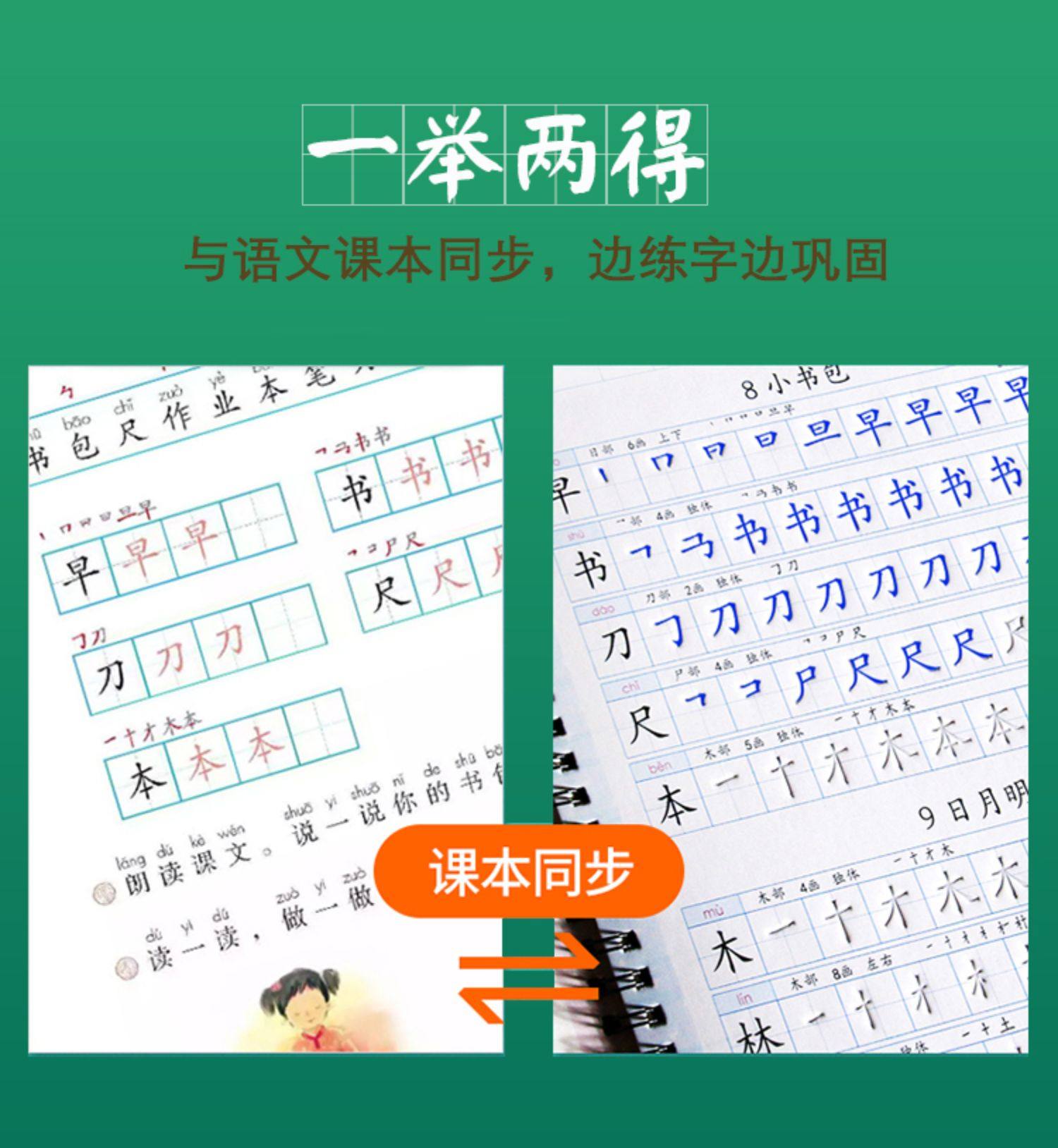 小学生练字贴一年级二三年级下册楷书人教版语文同步凹槽描红字贴