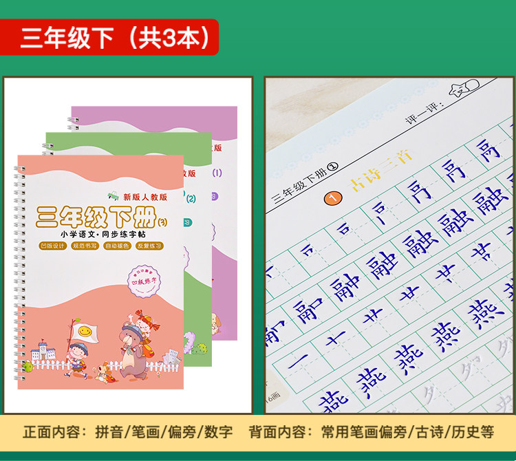 | third grade second volume full set (groove + tracing)(三年级下册全套(凹槽+描红)) | USD $9.54 | 994 piece available |