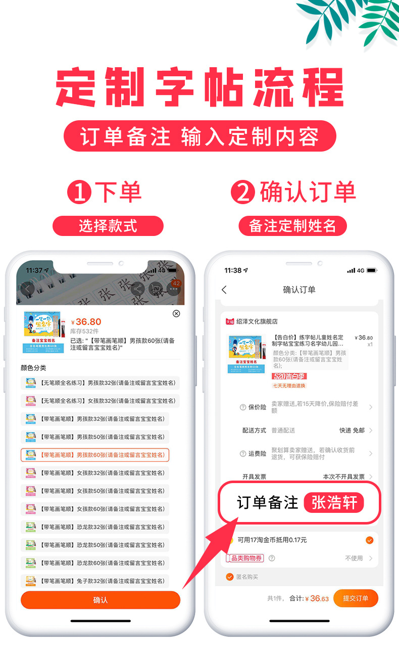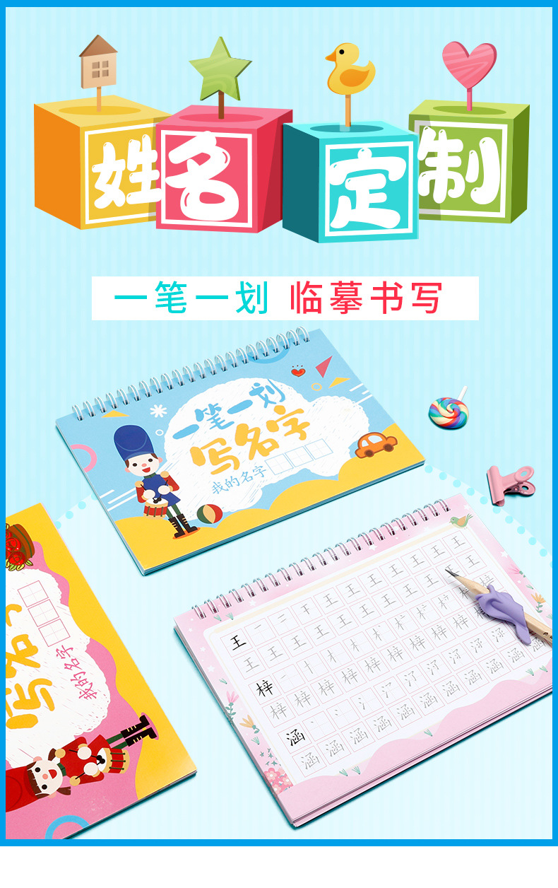 幼儿园名字贴定制儿童姓名贴订制宝宝练字帖铅笔描红本非刺绣印章