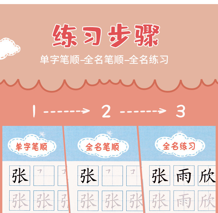 幼儿园姓名贴儿童宝宝入学名字练字帖贴铅笔练习描红本非刺绣