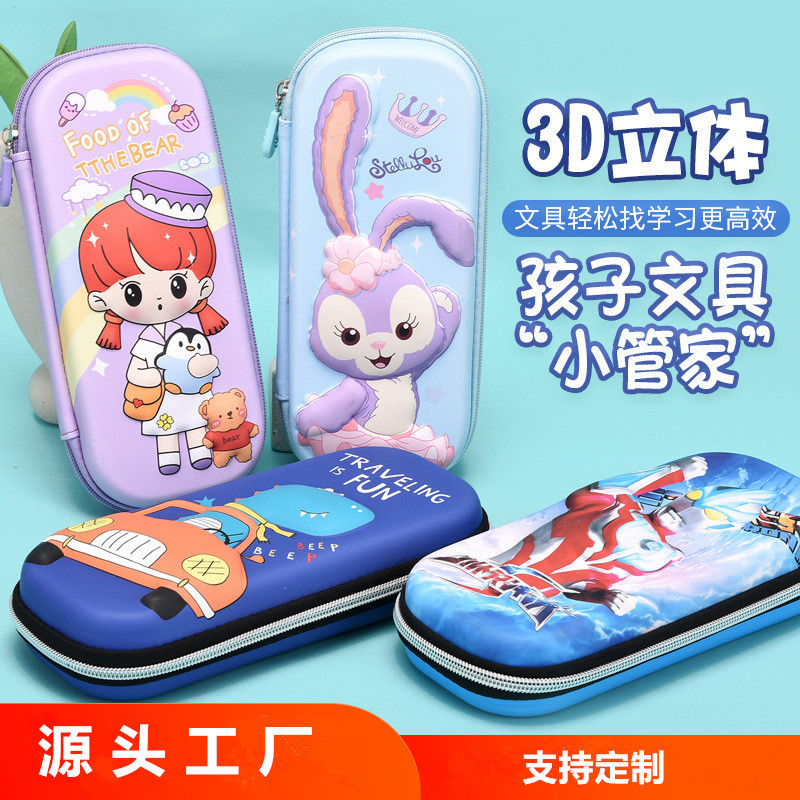 批发小学生笔袋儿童文具盒大容量男女孩动漫卡通3D立体拉链铅笔盒