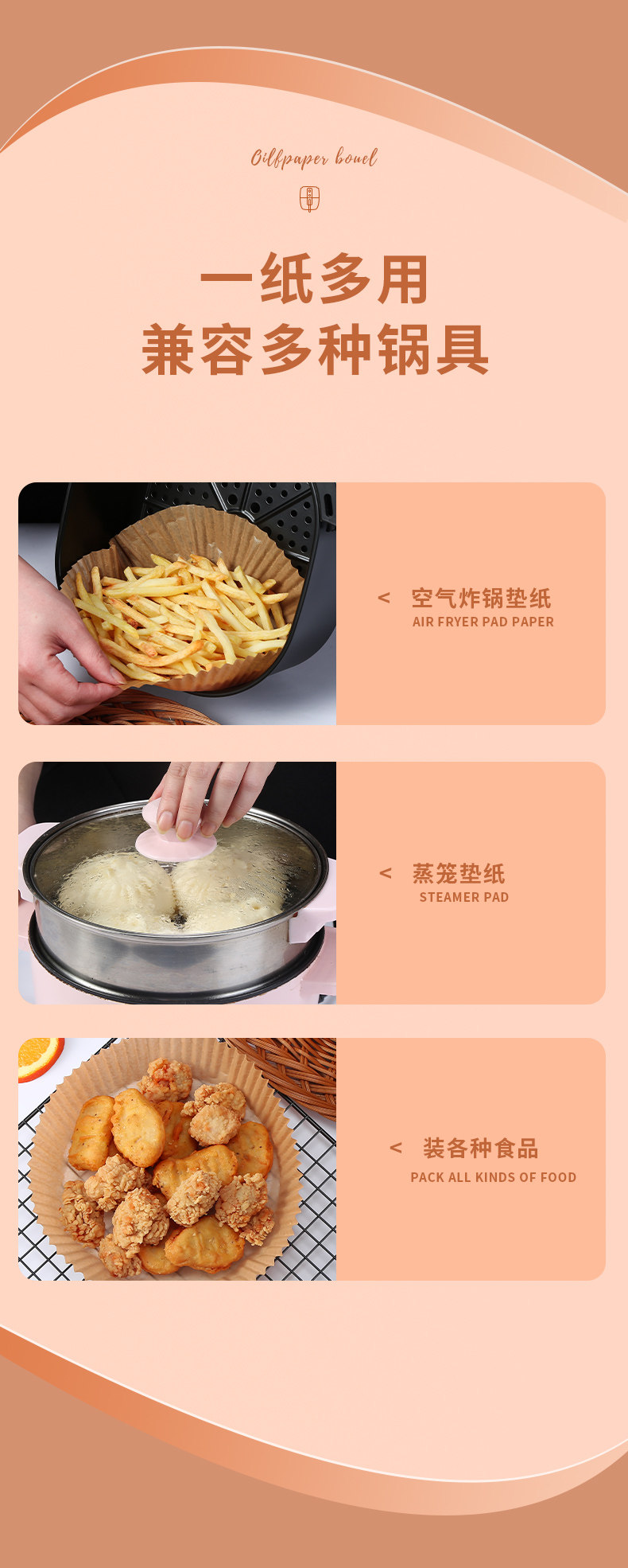 【产品特点】:使用方便、防油渍免清洗、空气炸锅专用纸、食品级材质