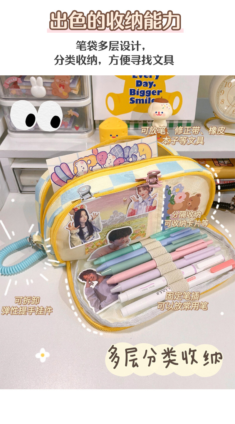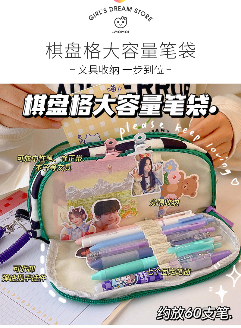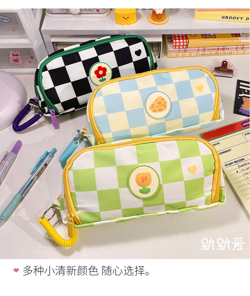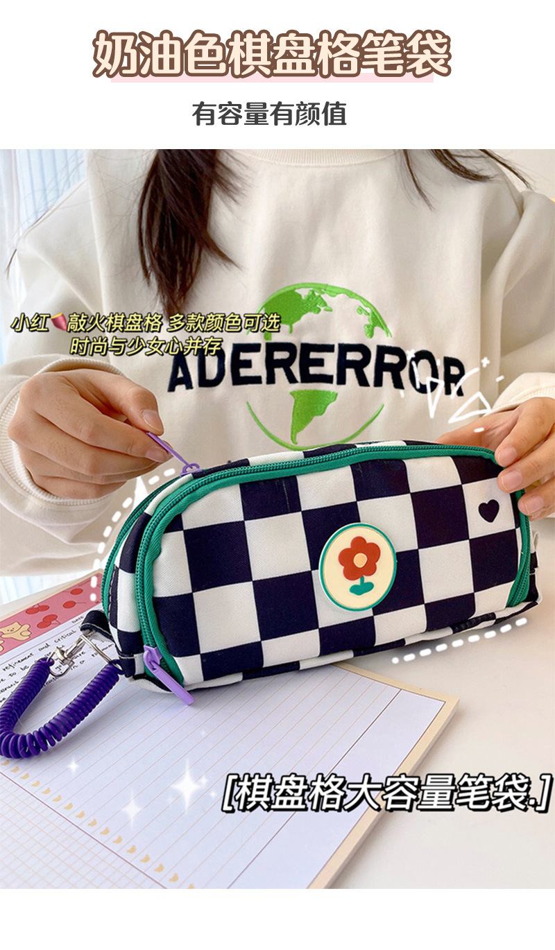 原创棋盘格笔袋2021年新款ins日系女孩高颜值冷门小众铅笔文具盒