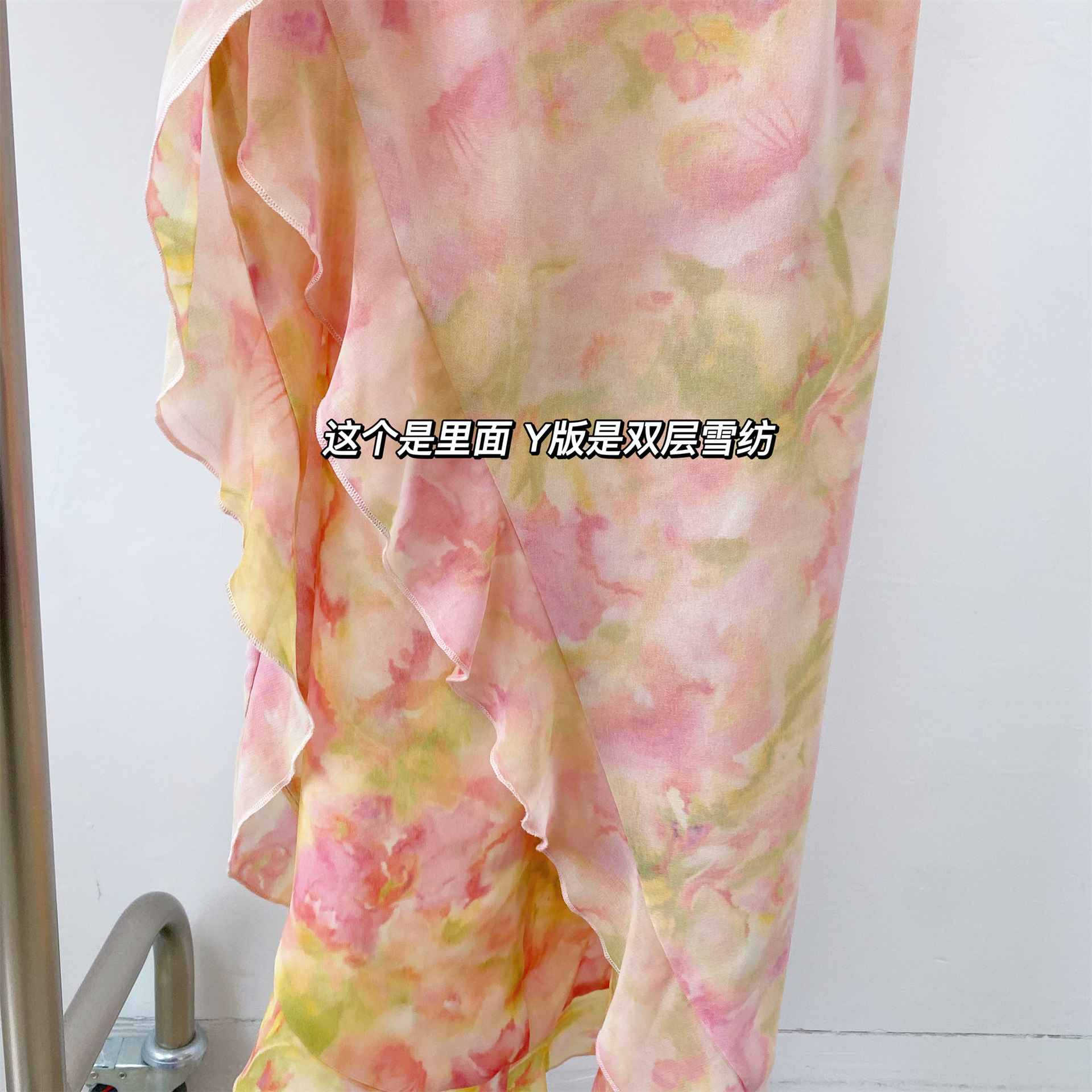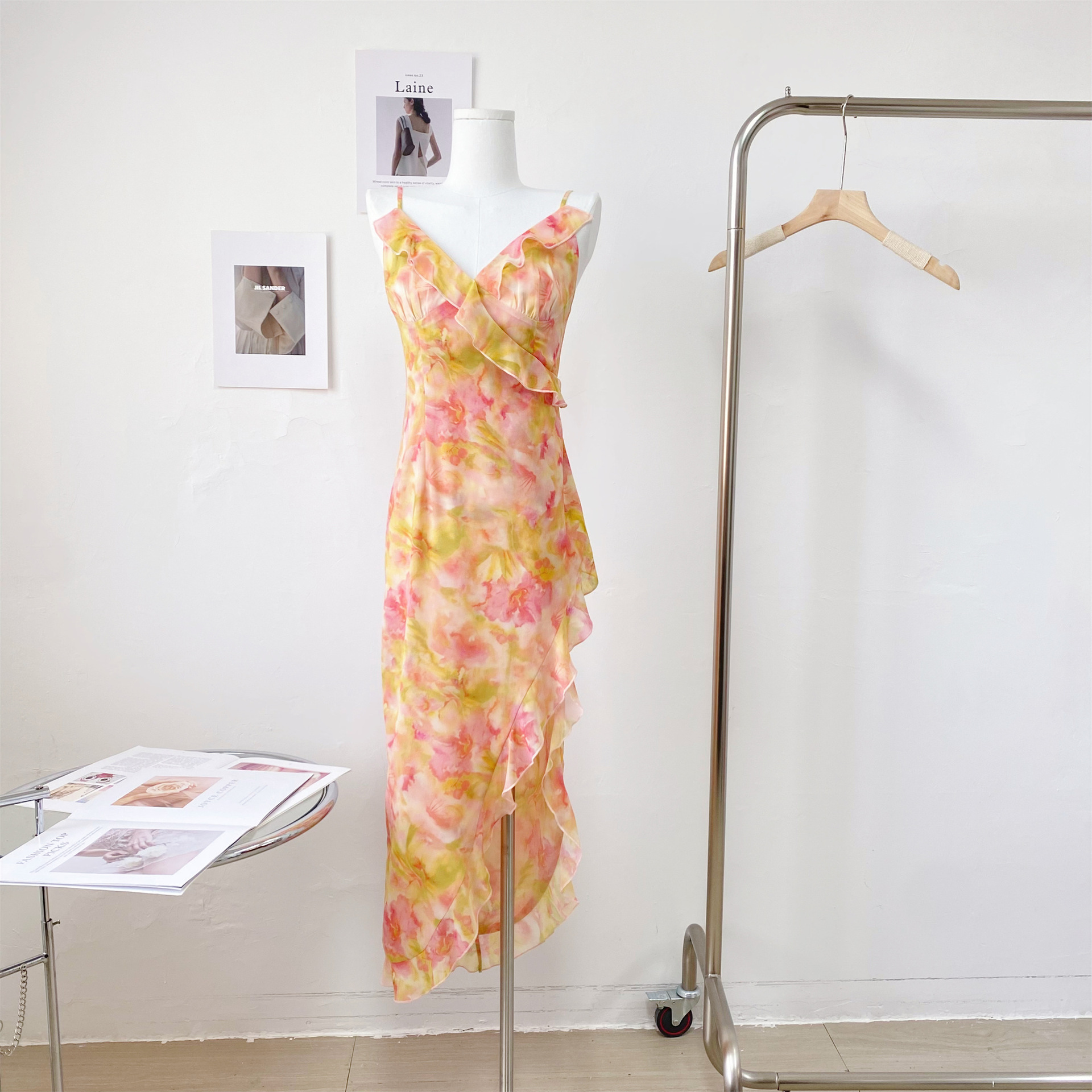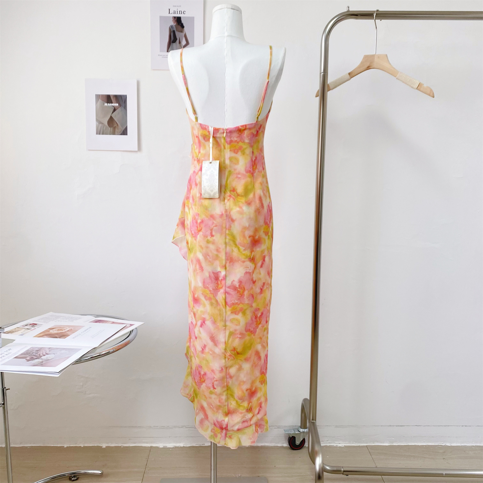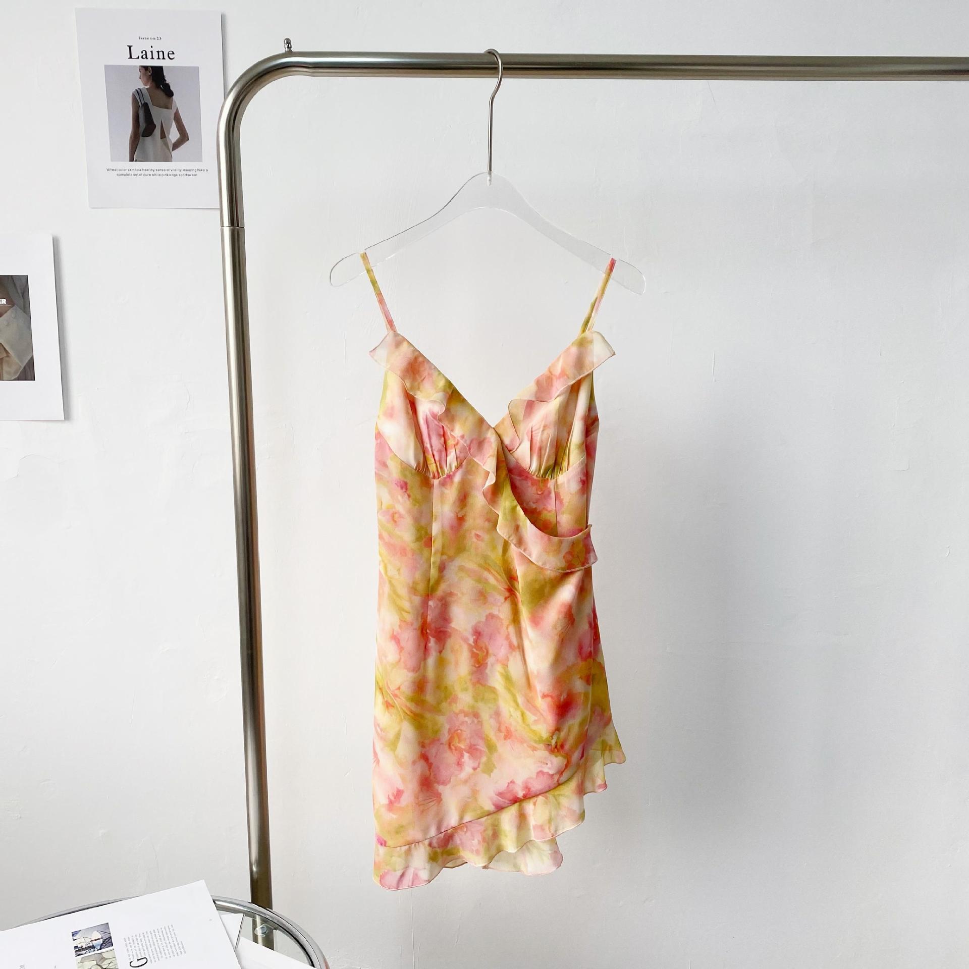 碎金蔷薇/2022春夏法式浪漫性感印花短裙吊带开叉连衣裙