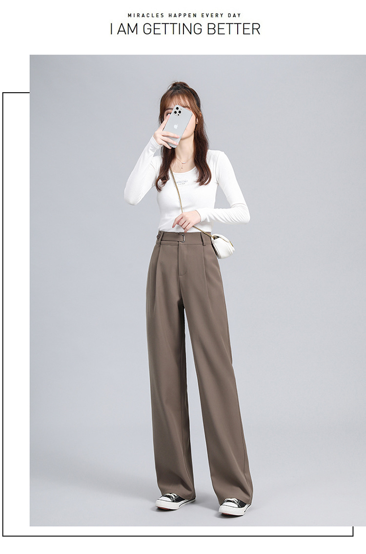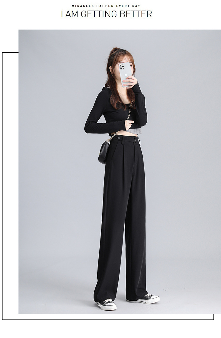 阔腿裤女春季新款高腰显瘦西装裤子小个子宽松垂感拖地加长直筒裤