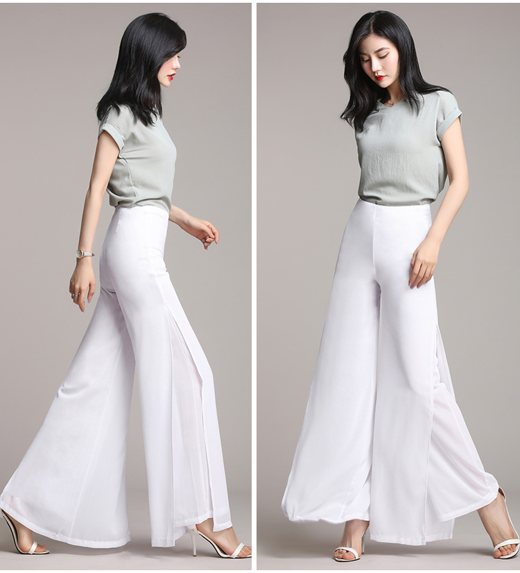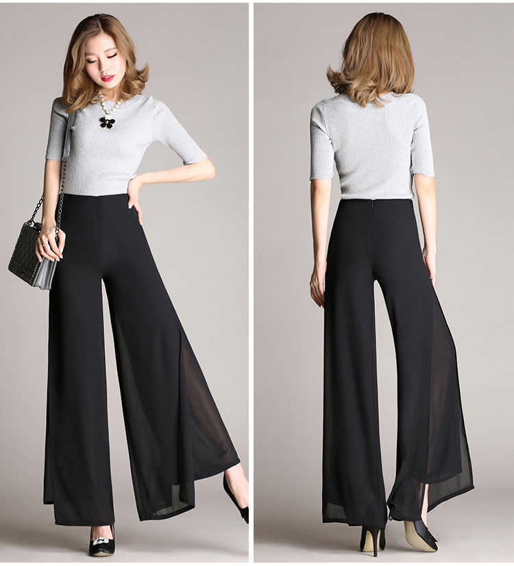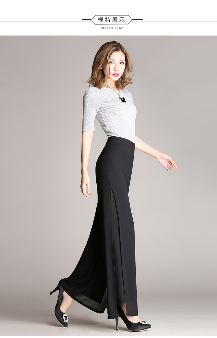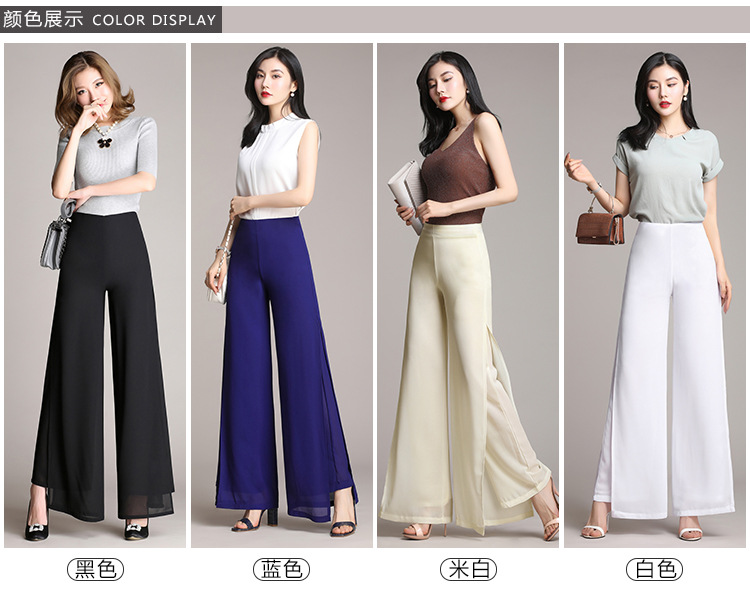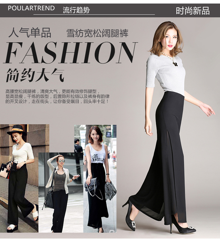 雪纺开叉阔腿裤女春夏薄款韩版高腰宽松裤子垂坠感甩裤拖地舞裤潮