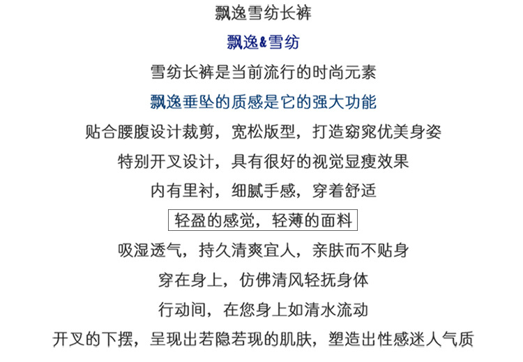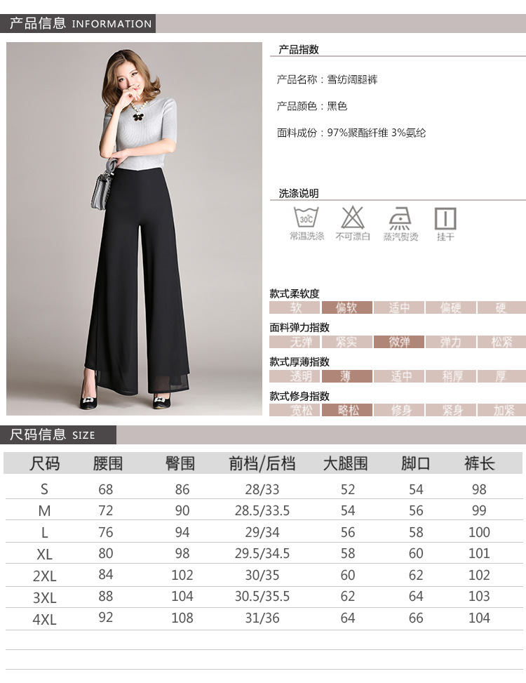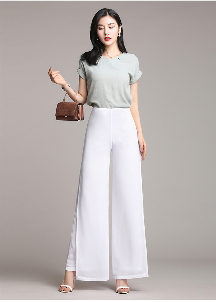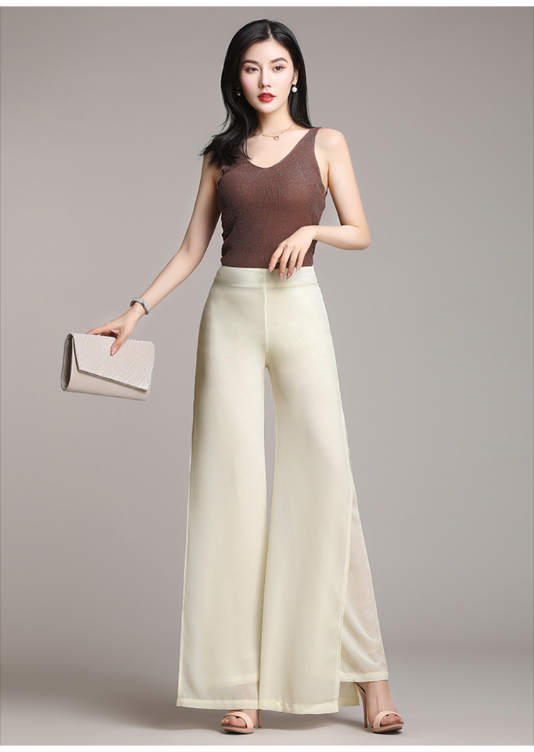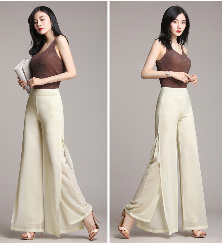 雪纺开叉阔腿裤女春夏薄款韩版高腰宽松裤子垂坠感甩裤拖地舞裤潮