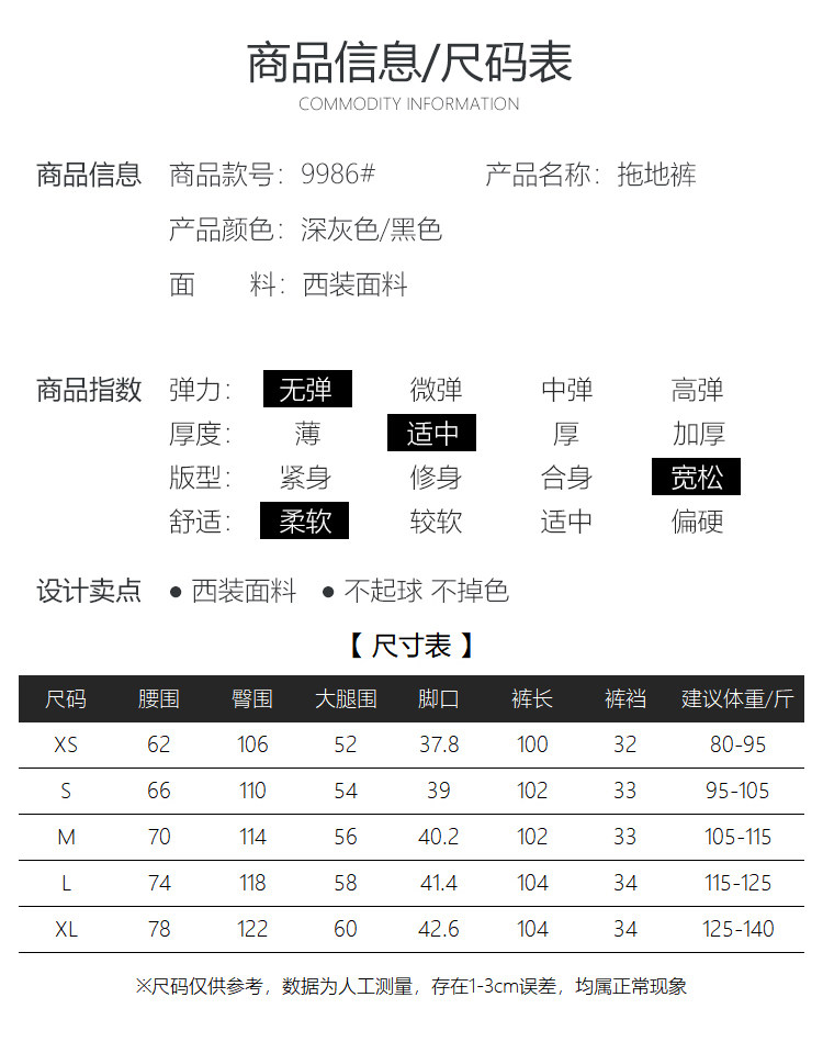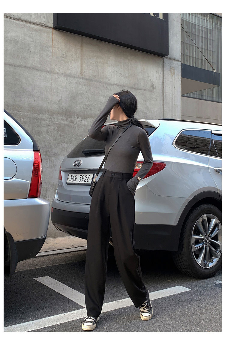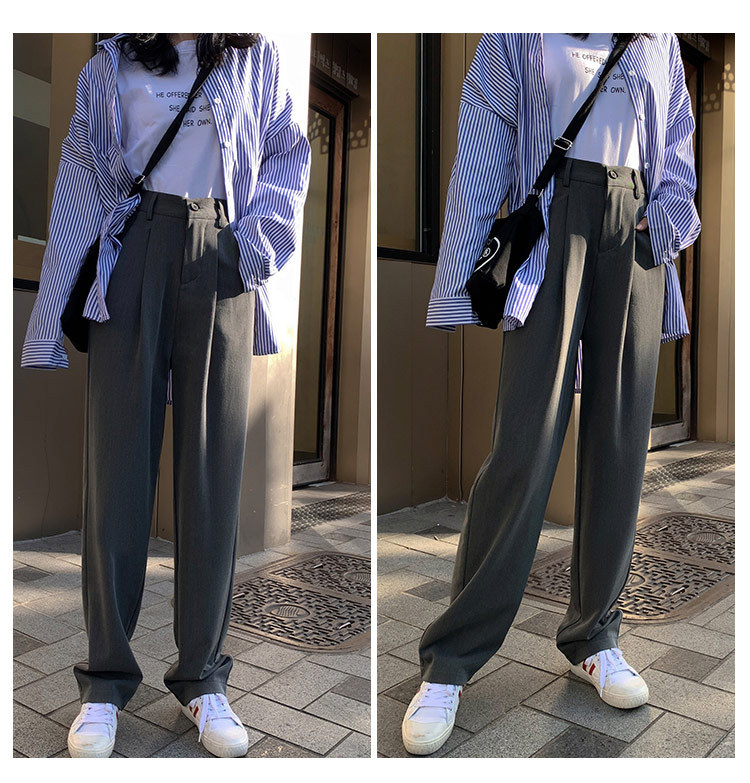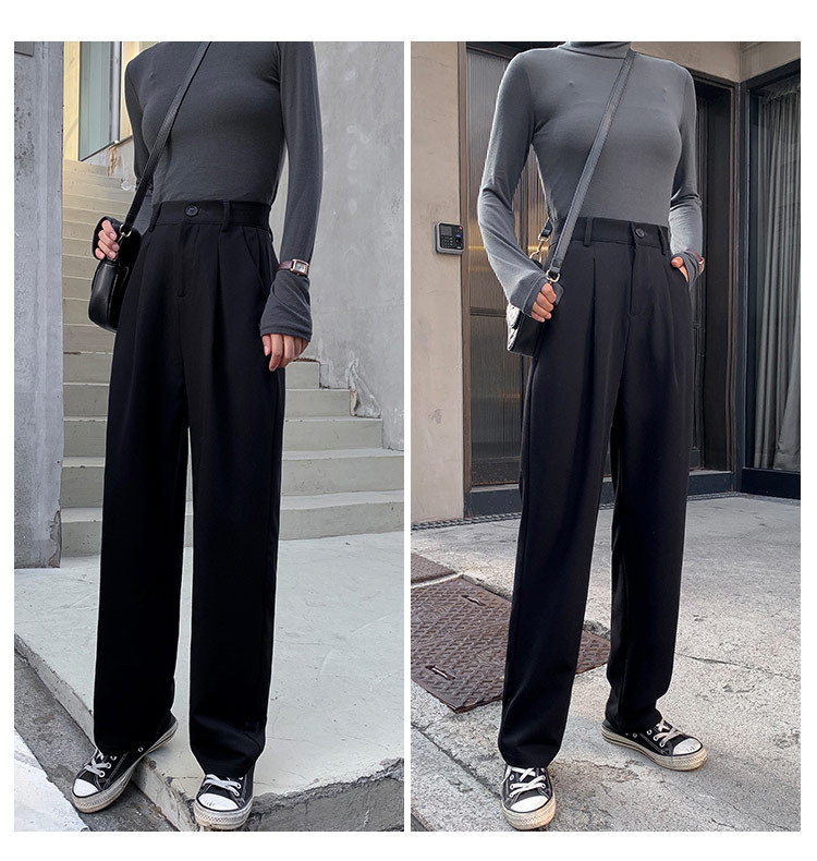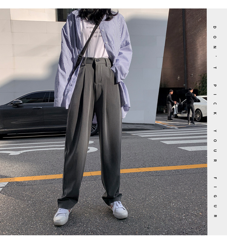 实拍 2021阔腿裤女高腰垂感黑色显瘦西装裤直筒灰色拖地c韩版洋气