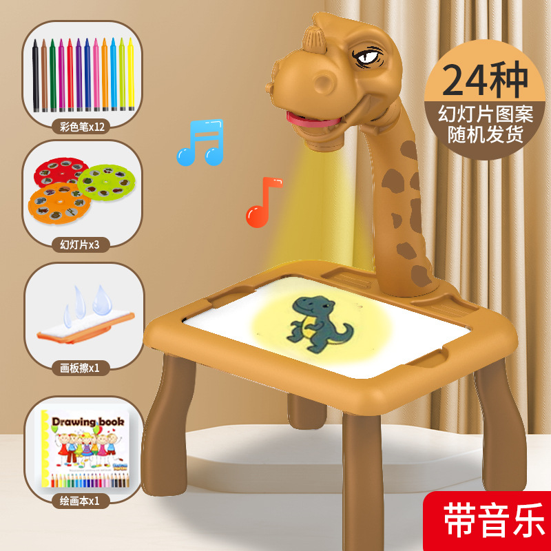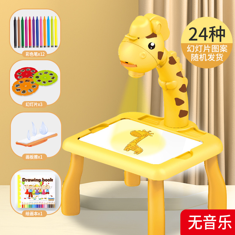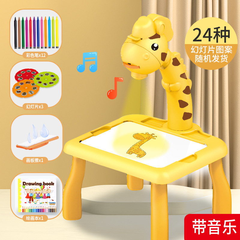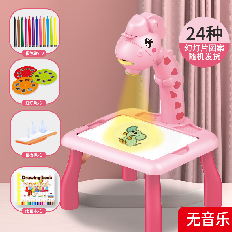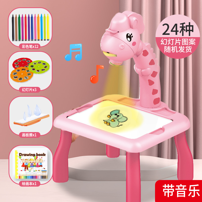 多功能投影绘画桌小鹿卡通造型带声光涂鸦画画写字板儿童玩具套装