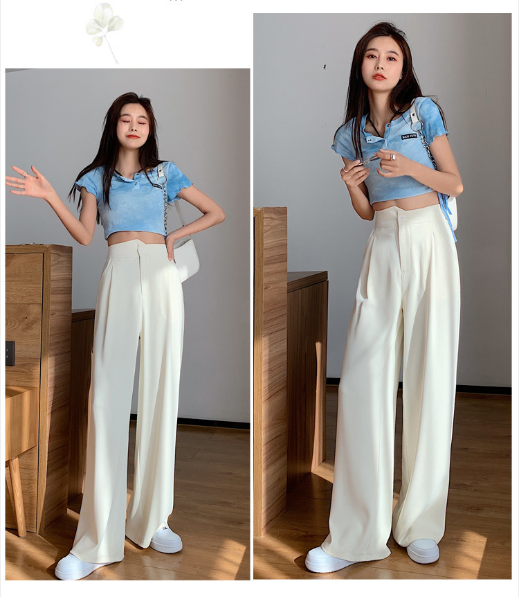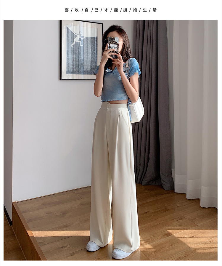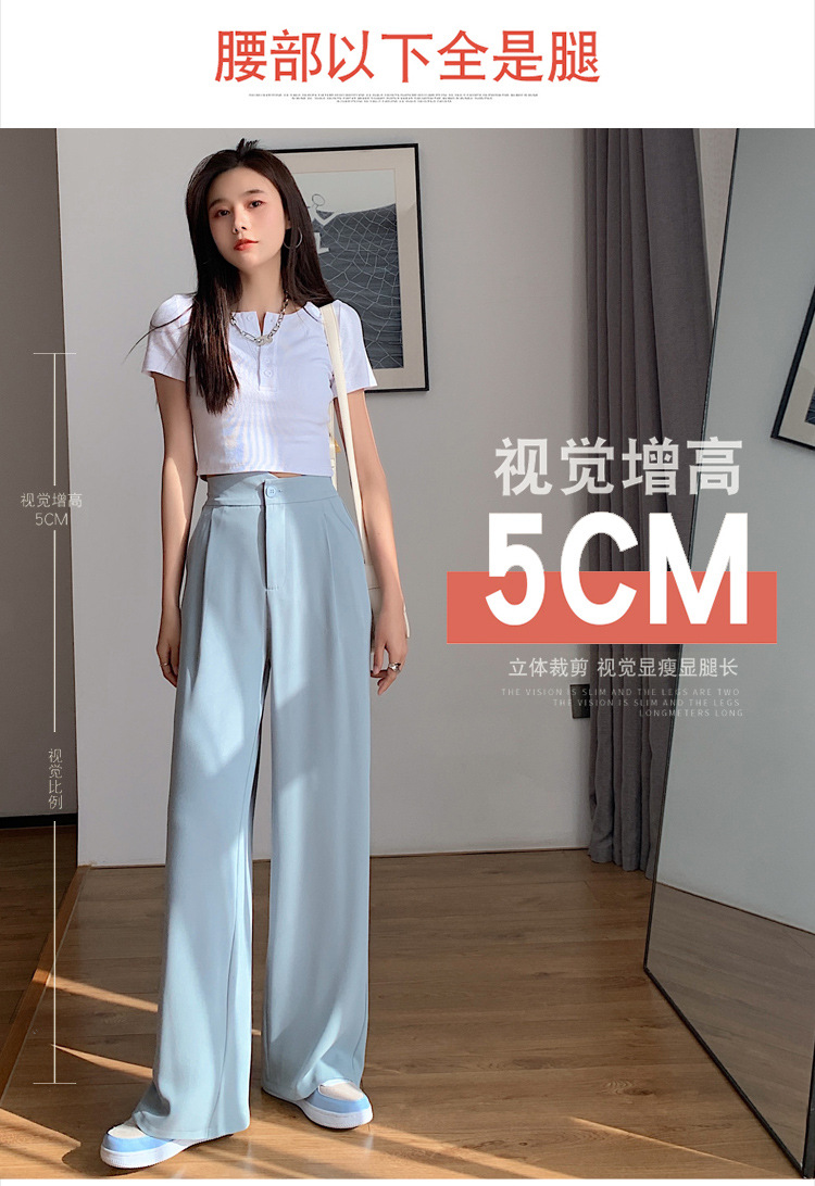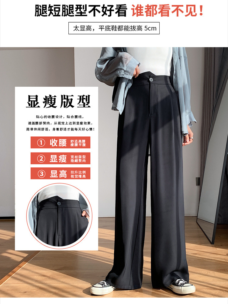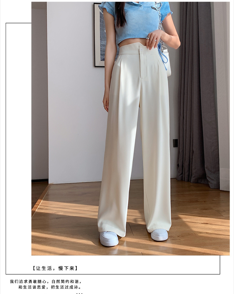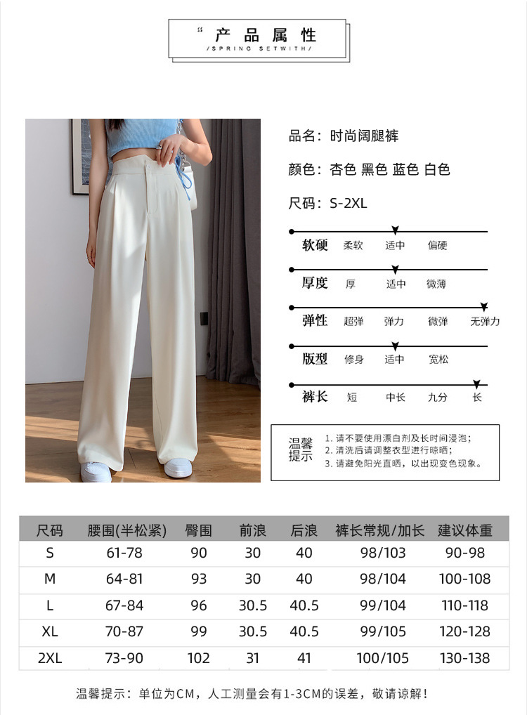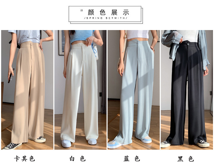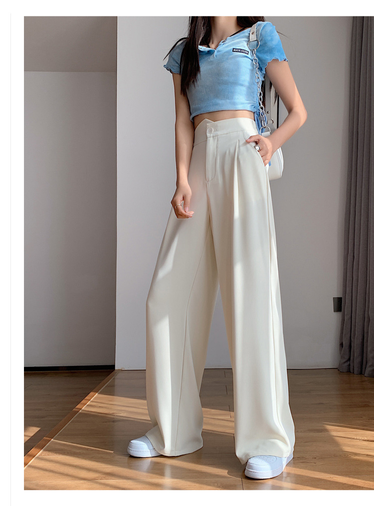实拍白色阔腿裤女高腰垂感2022春夏拖地长裤直筒宽松显瘦西装裤