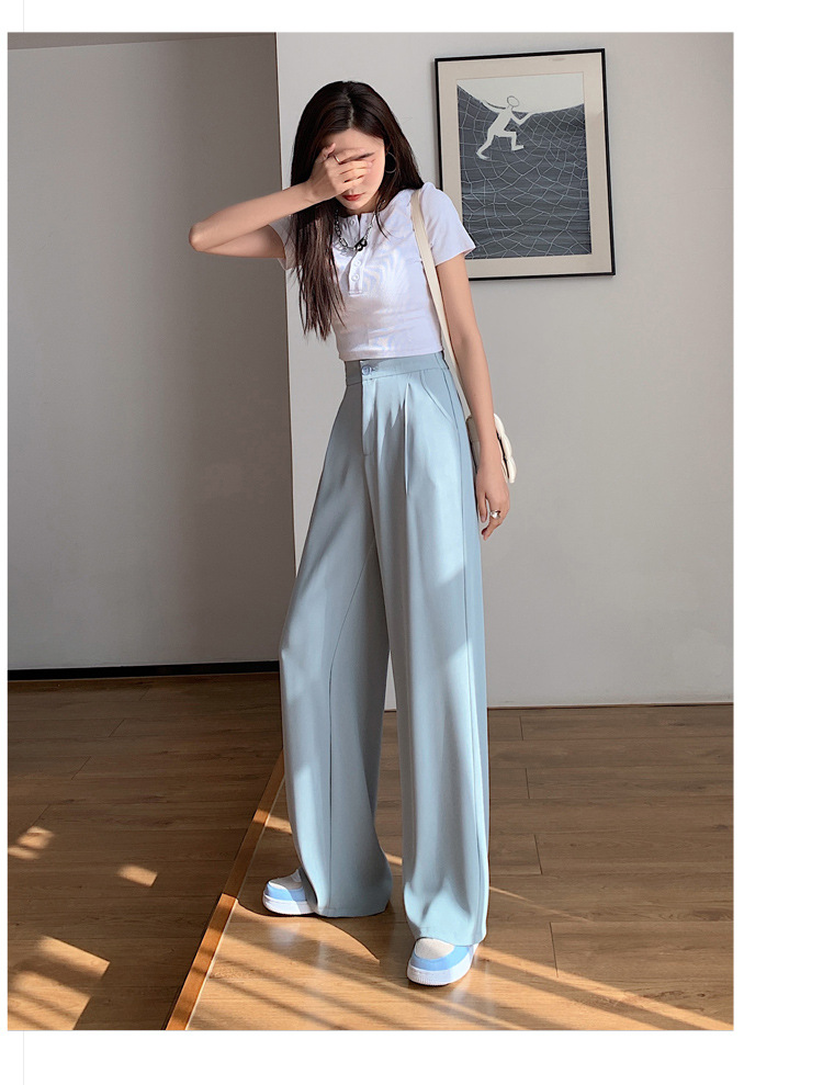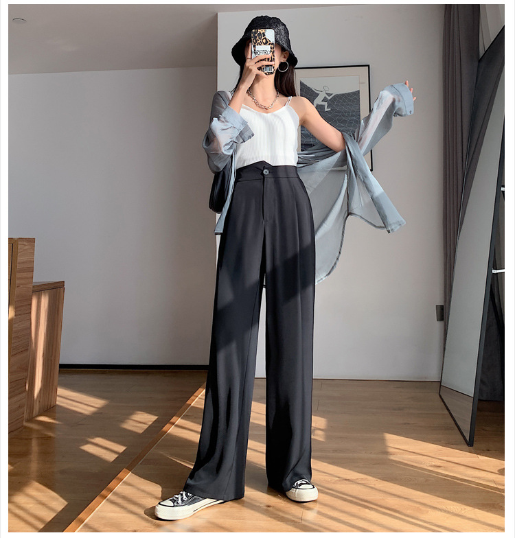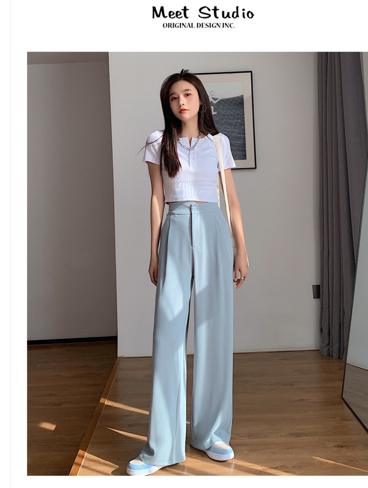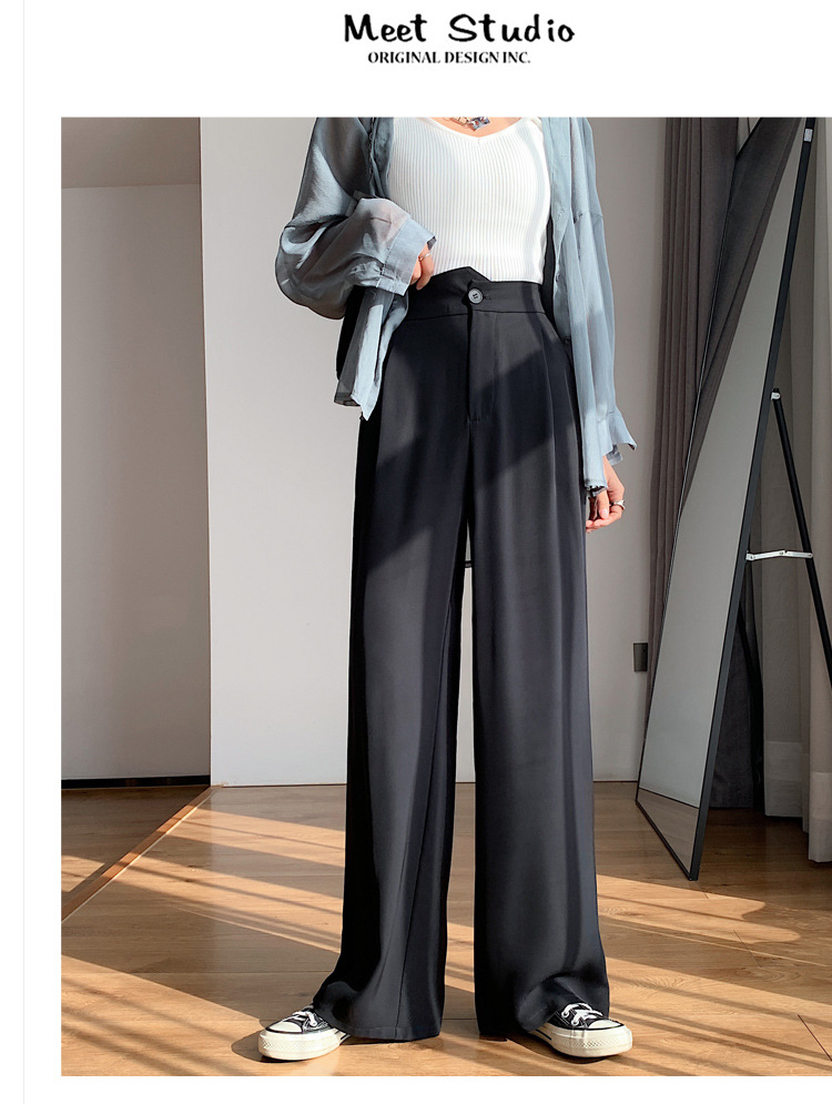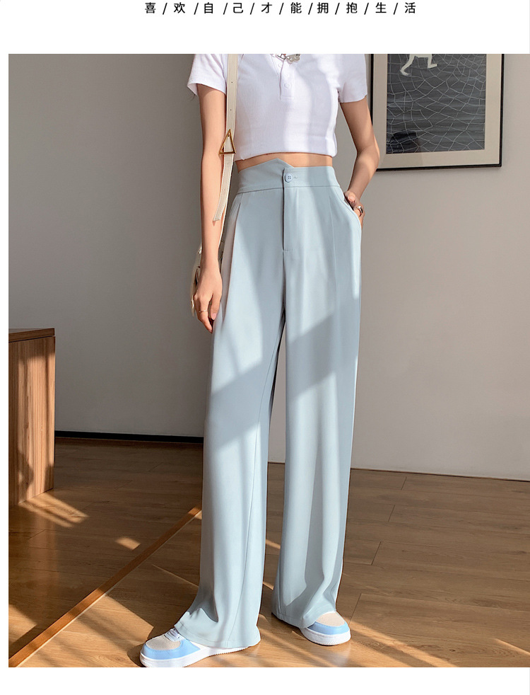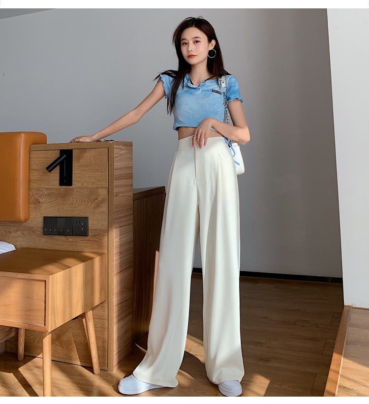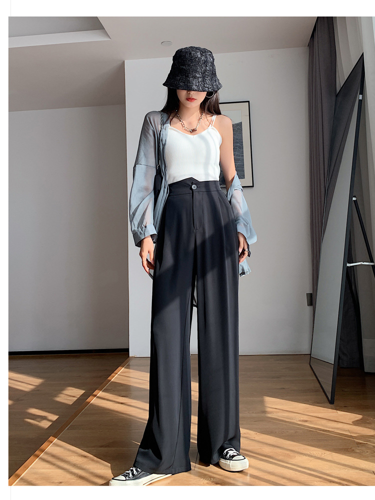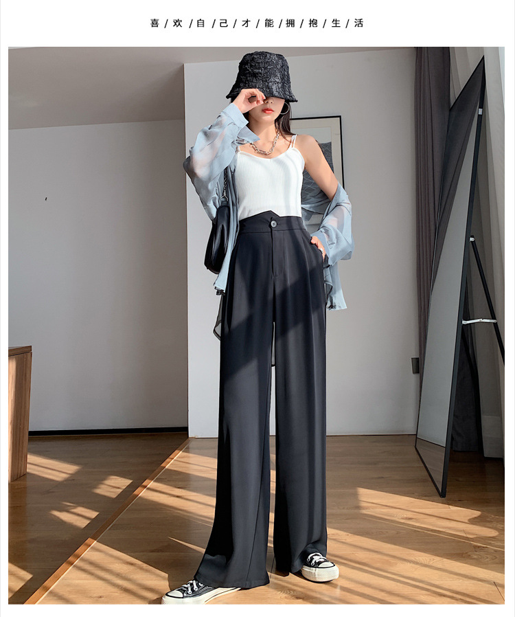 实拍白色阔腿裤女高腰垂感2022春夏拖地长裤直筒宽松显瘦西装裤