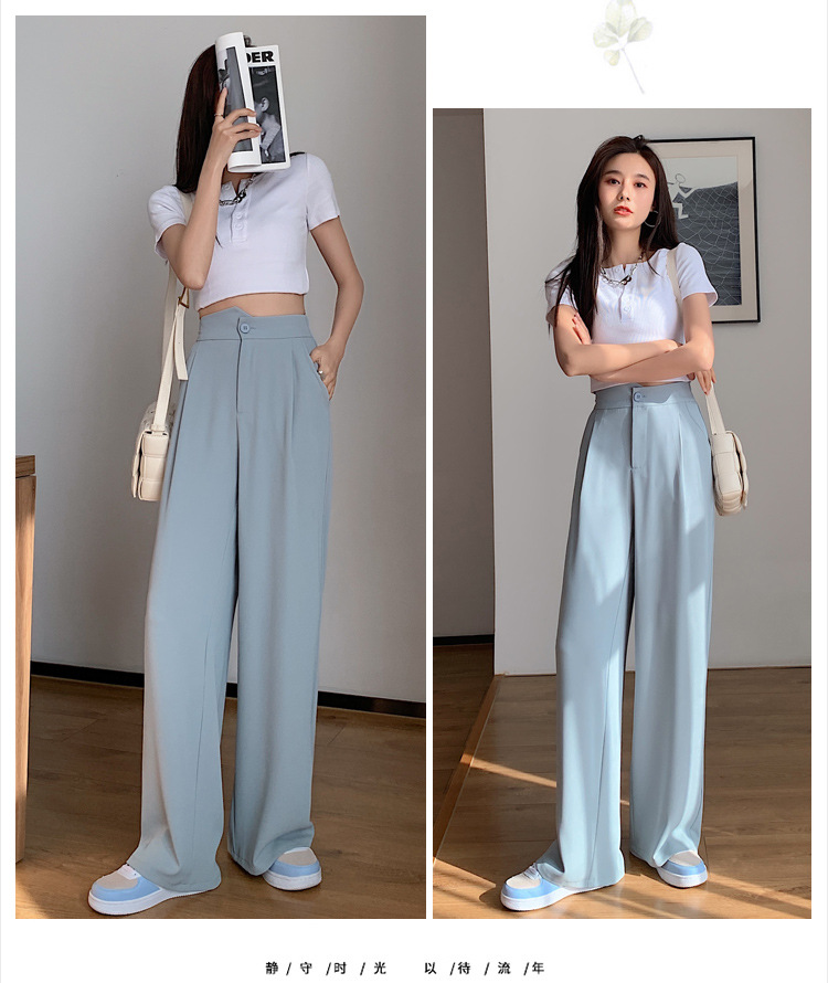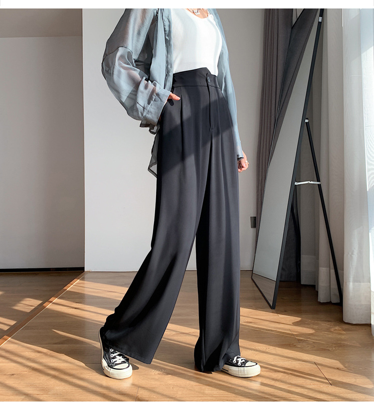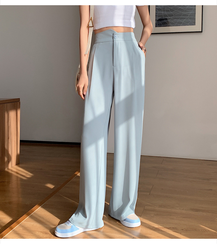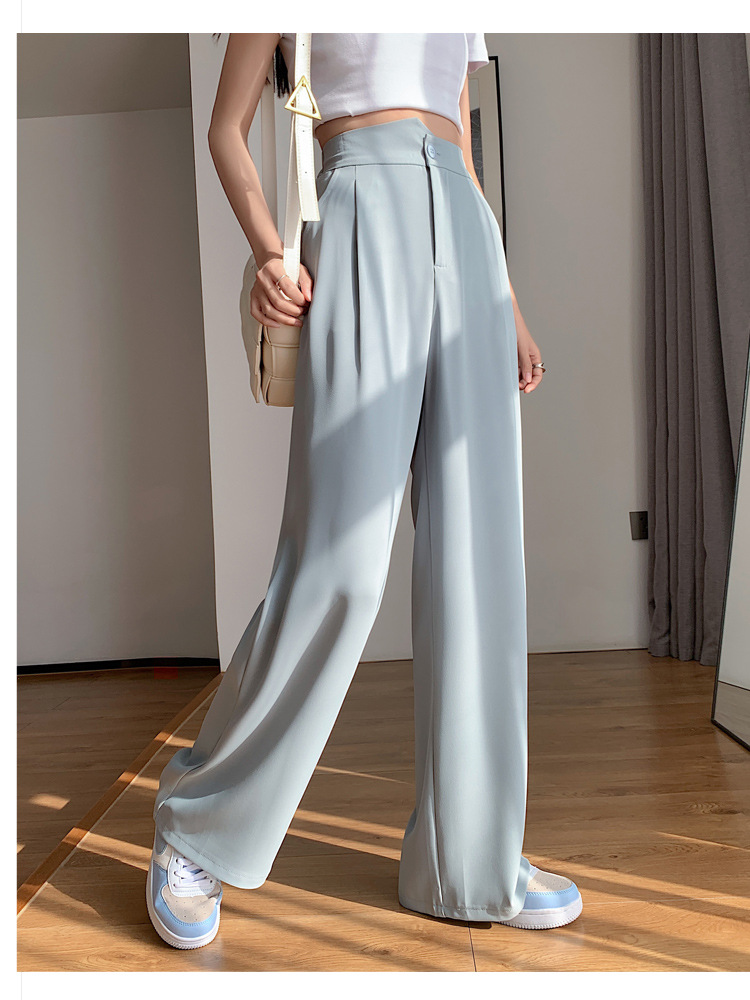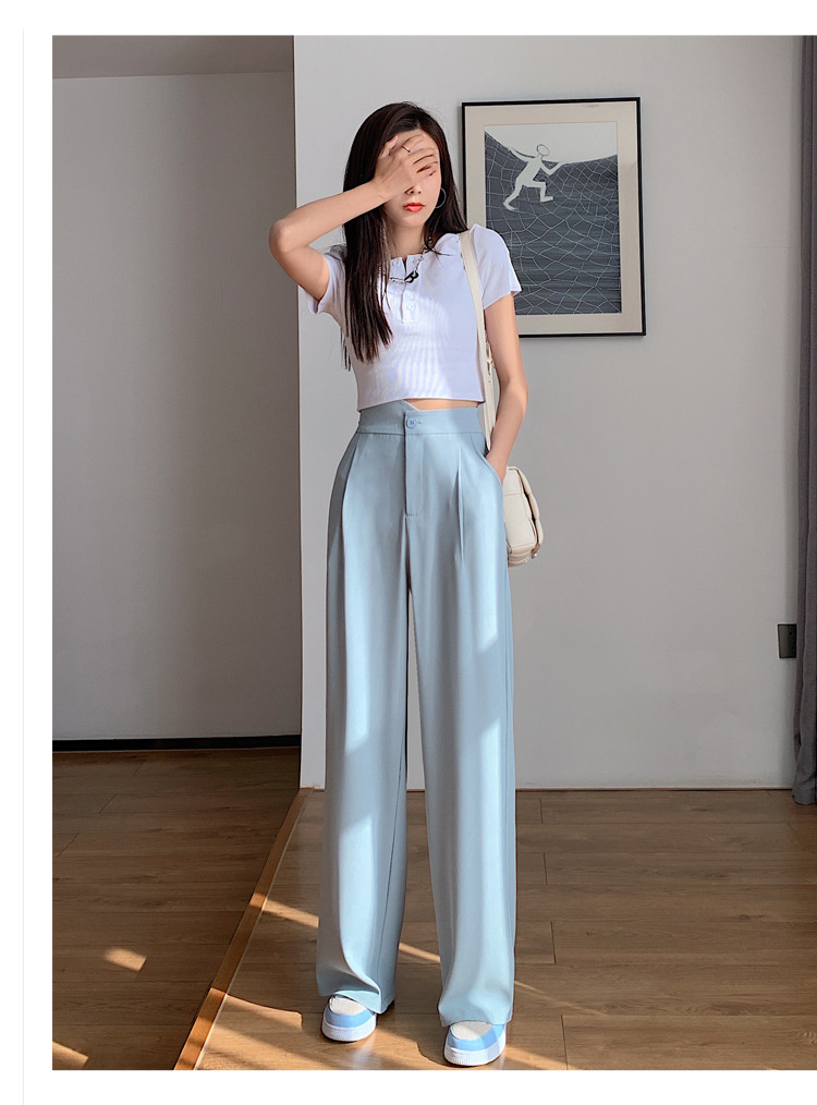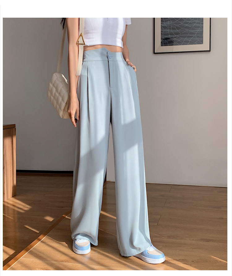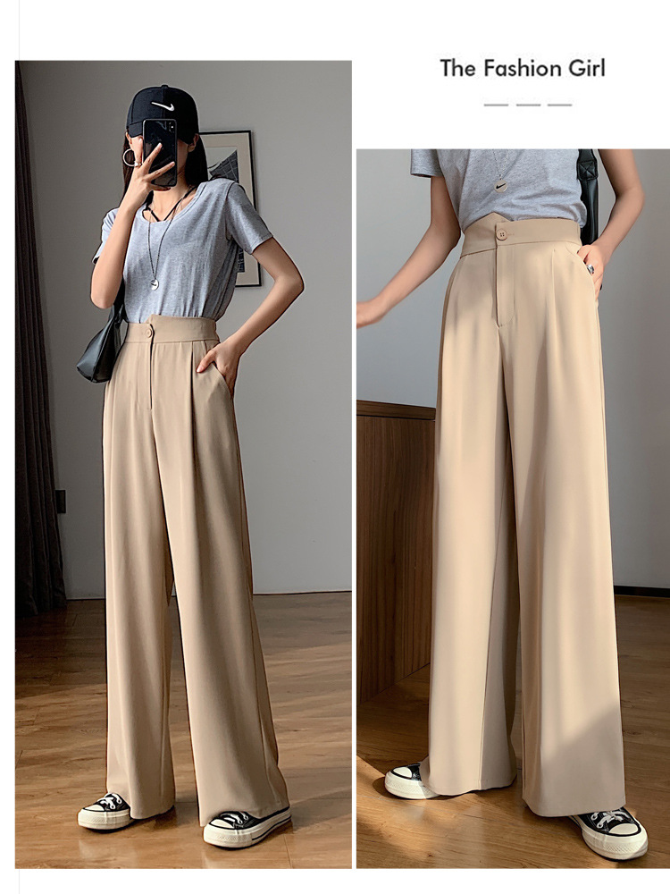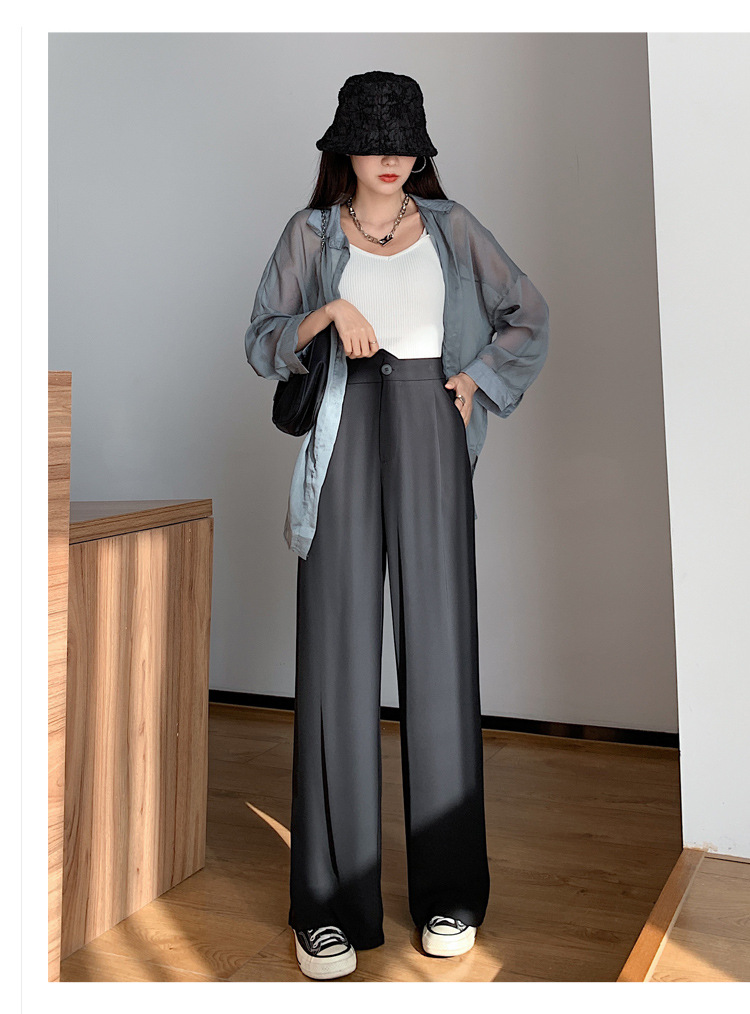 实拍白色阔腿裤女高腰垂感2022春夏拖地长裤直筒宽松显瘦西装裤