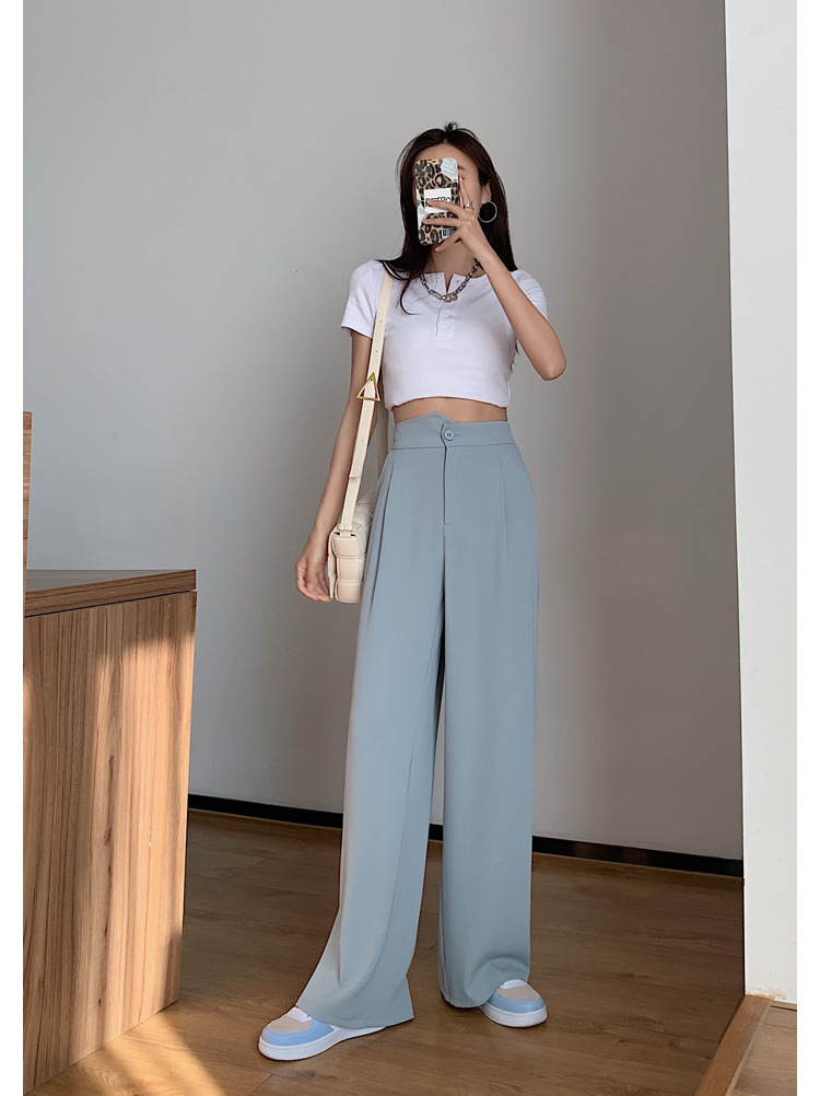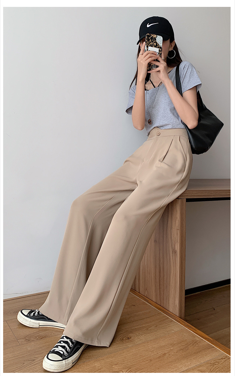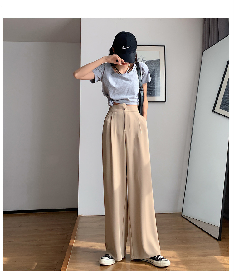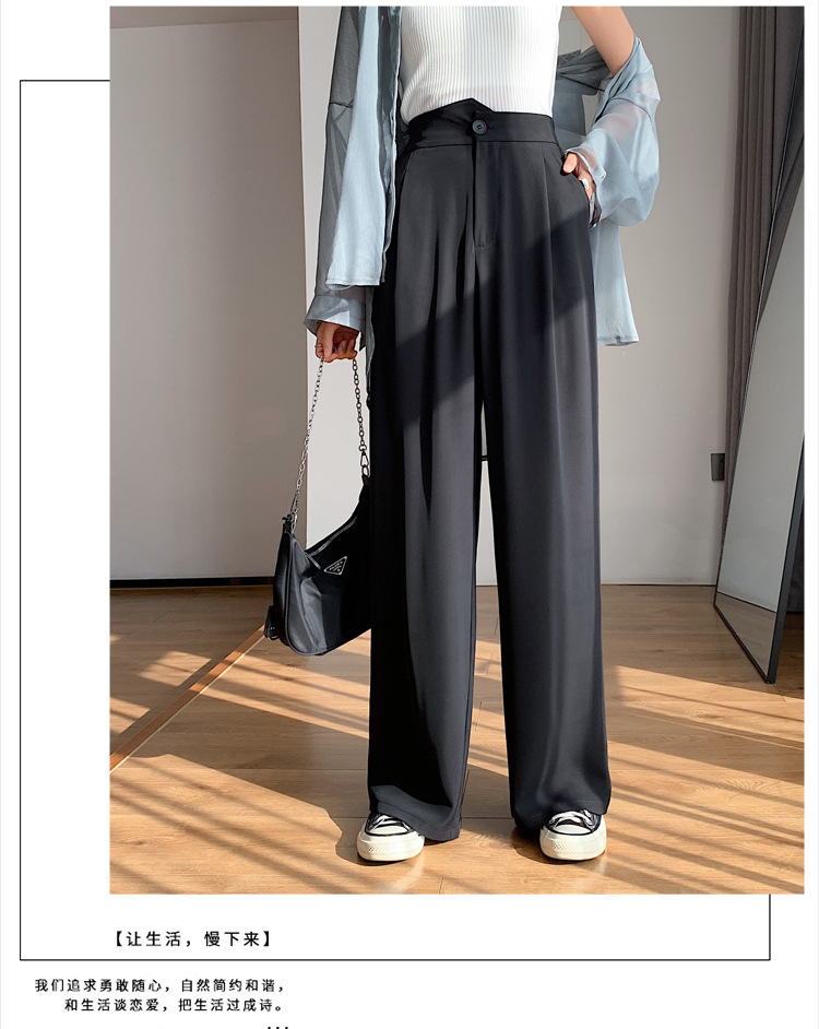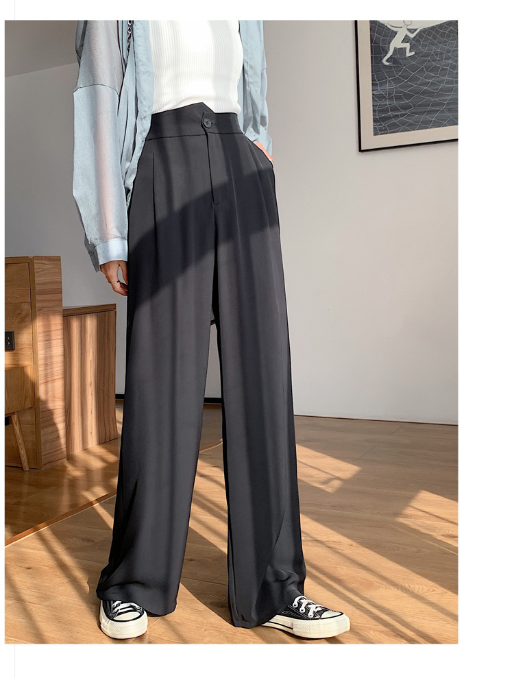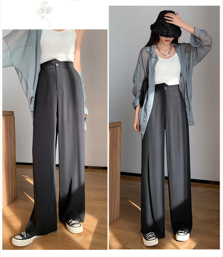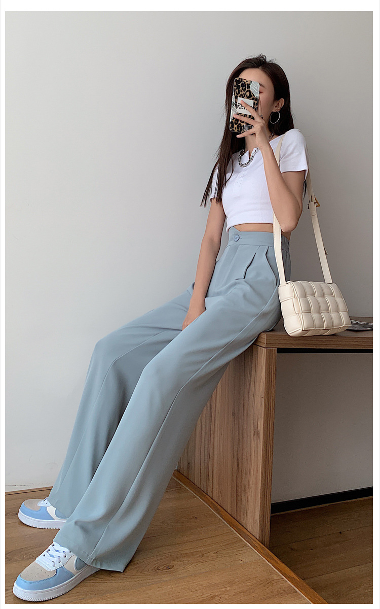 实拍白色阔腿裤女高腰垂感2022春夏拖地长裤直筒宽松显瘦西装裤