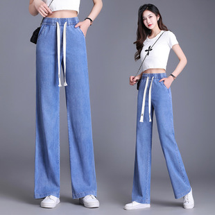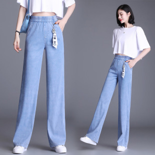 天丝牛仔阔腿裤女夏季2022新款韩版薄款显瘦宽松垂感水洗休闲长裤