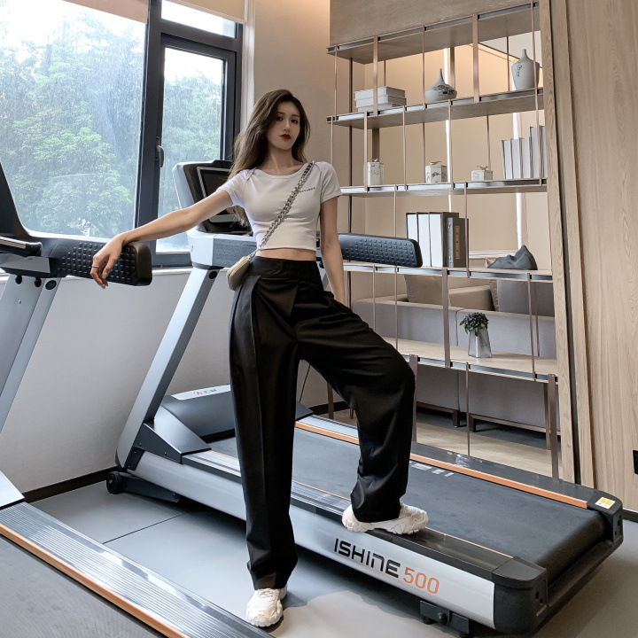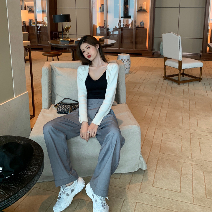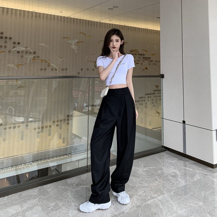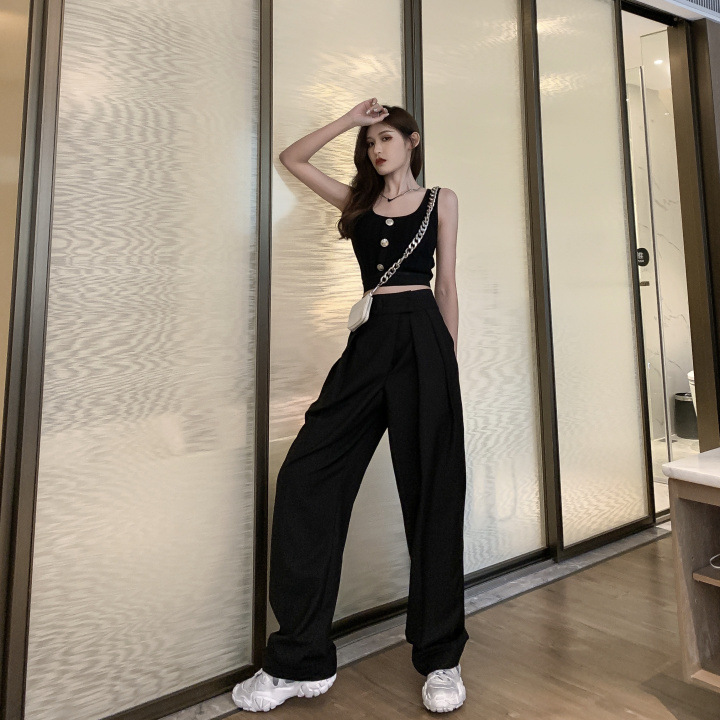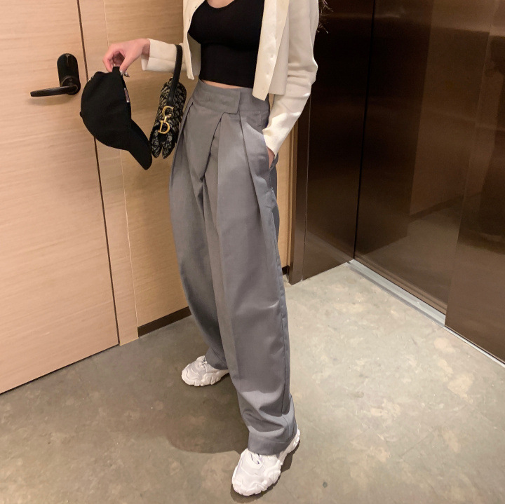 2022秋季季新款chic韩版港味魔术贴高腰显瘦休闲垂感阔腿拖地长裤