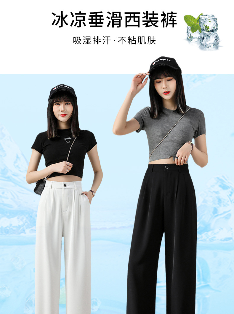 薄款雪纺西装阔腿裤女夏2022新款韩版高腰宽松显瘦垂感直筒拖地裤