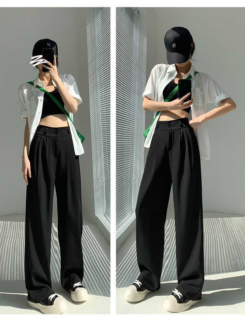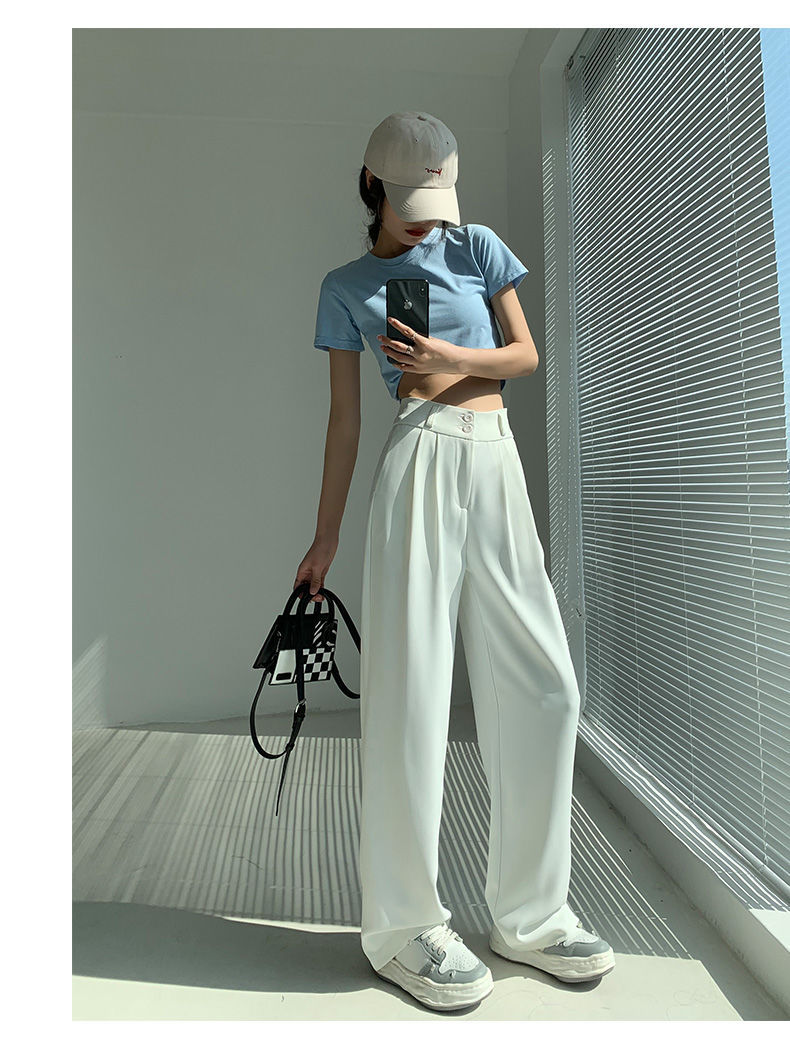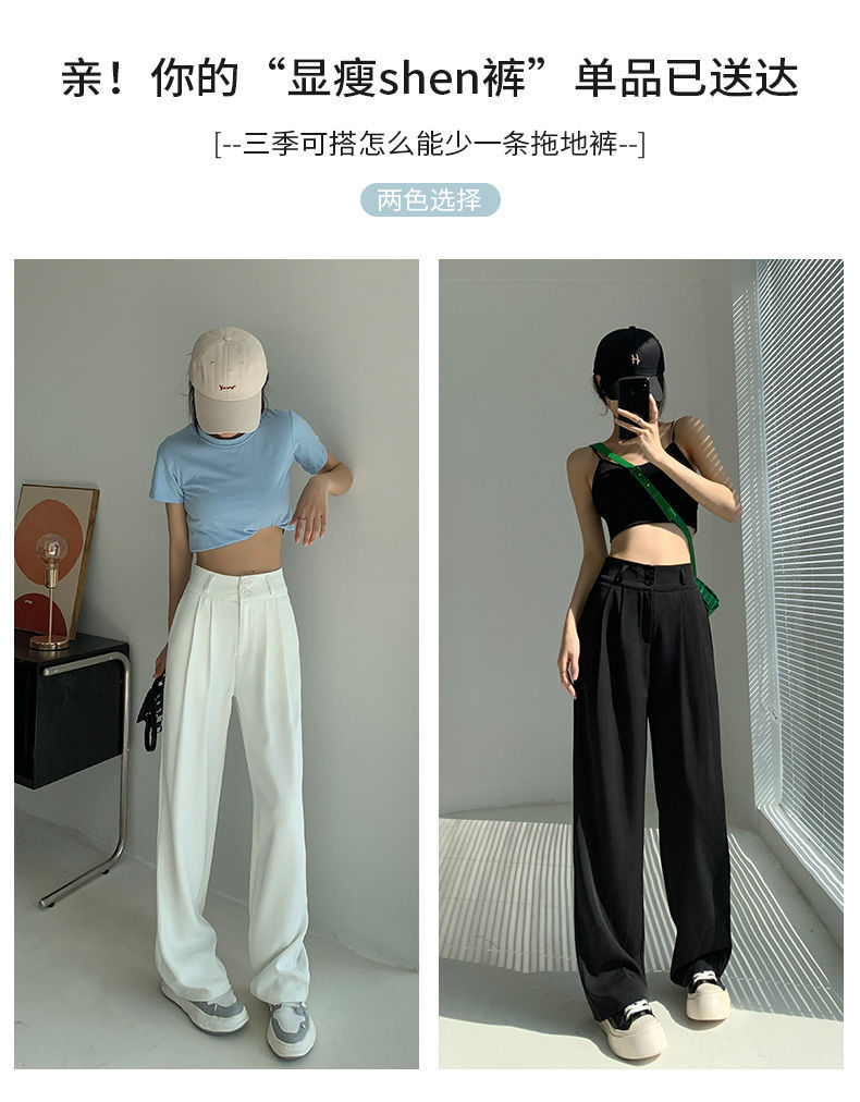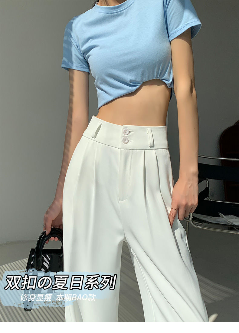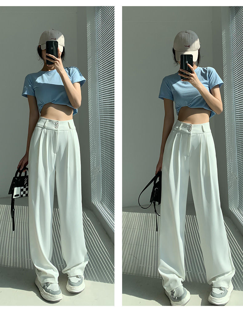 白色阔腿裤女夏季薄款宽松垂感高腰直筒休闲显瘦拖地西装裤高级感