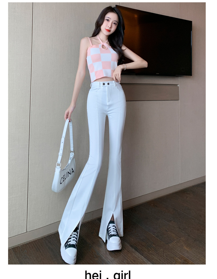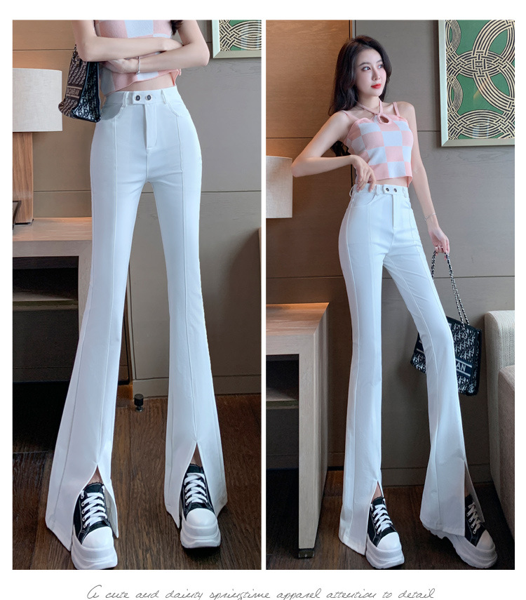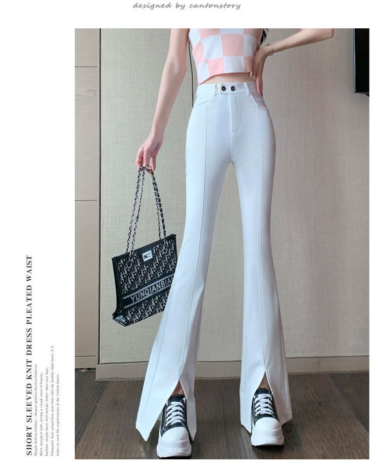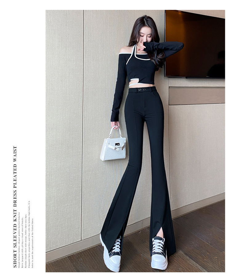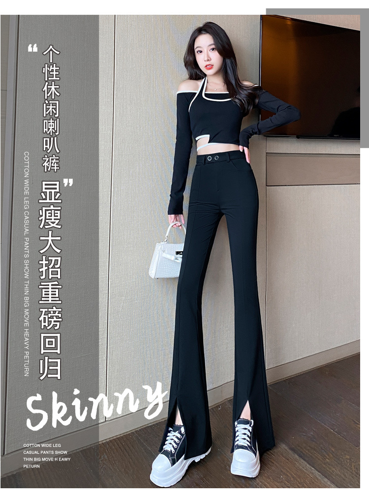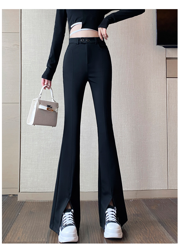 开叉裤女春秋高腰弹力黑色喇叭裤百搭修身西装阔腿休闲拖地长裤