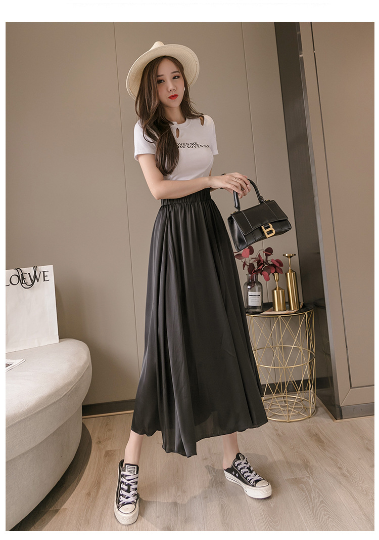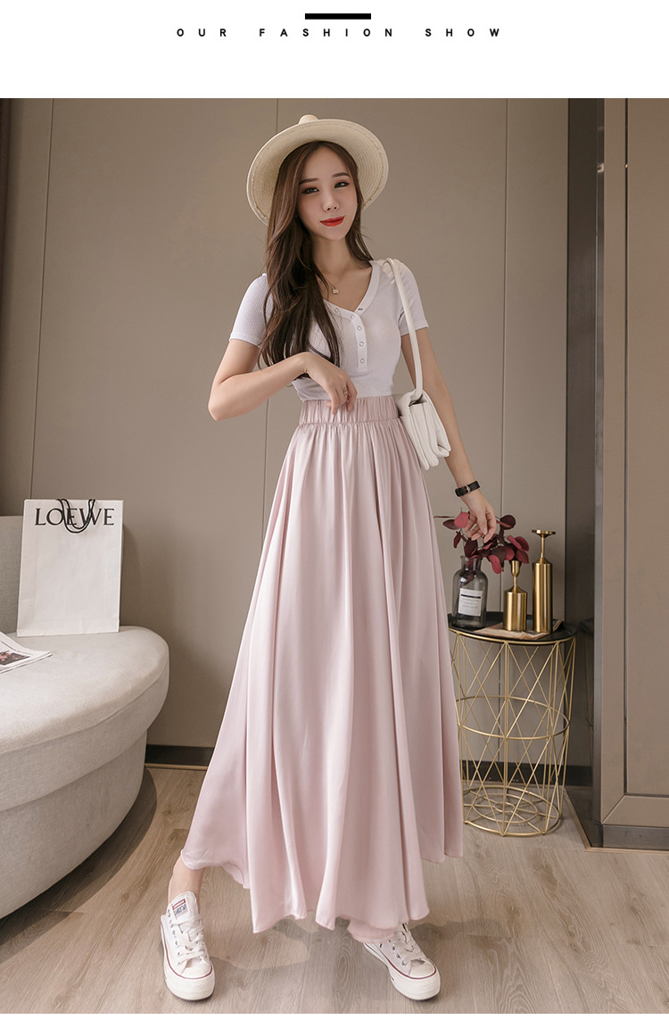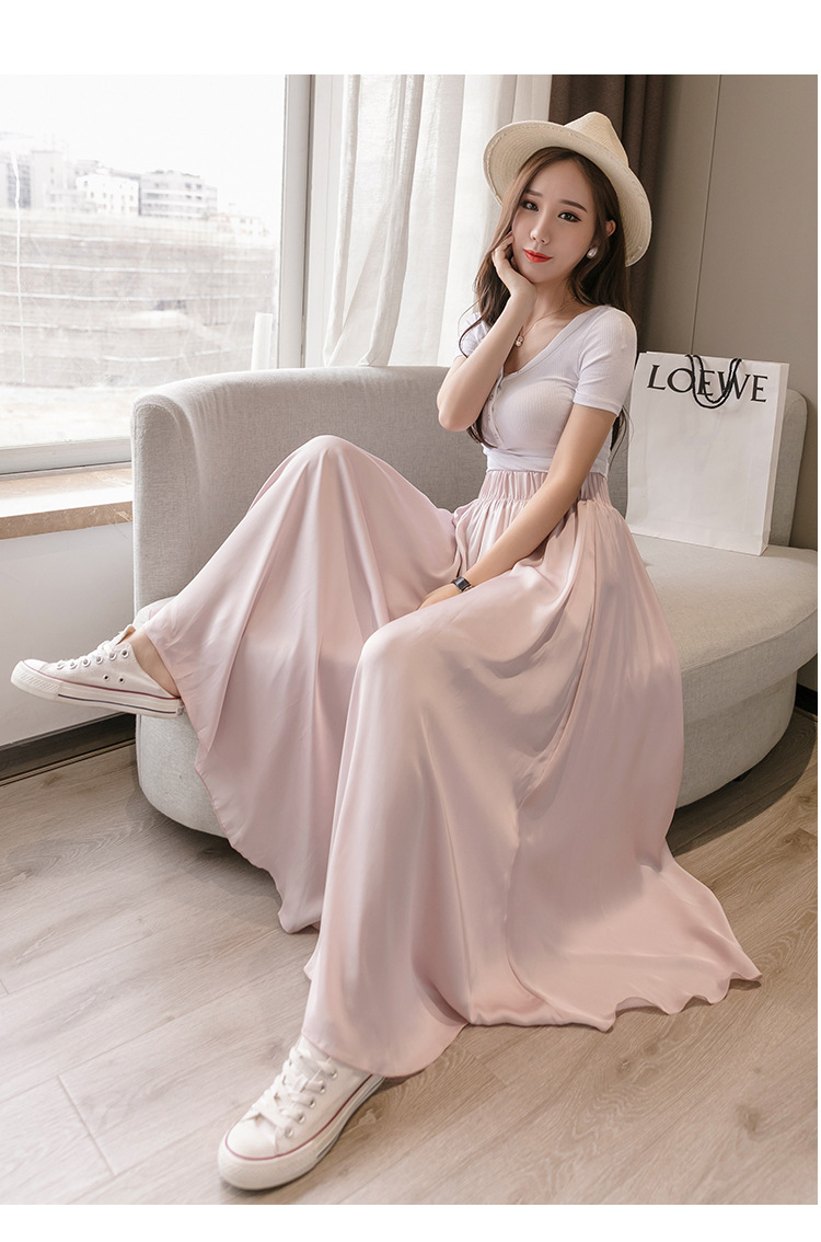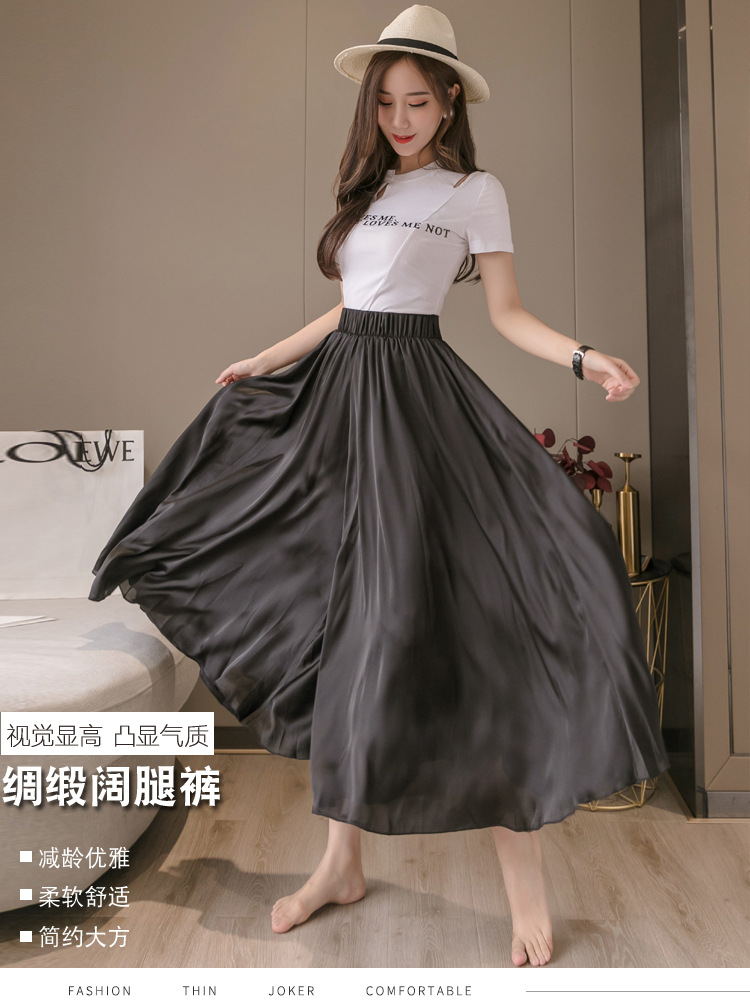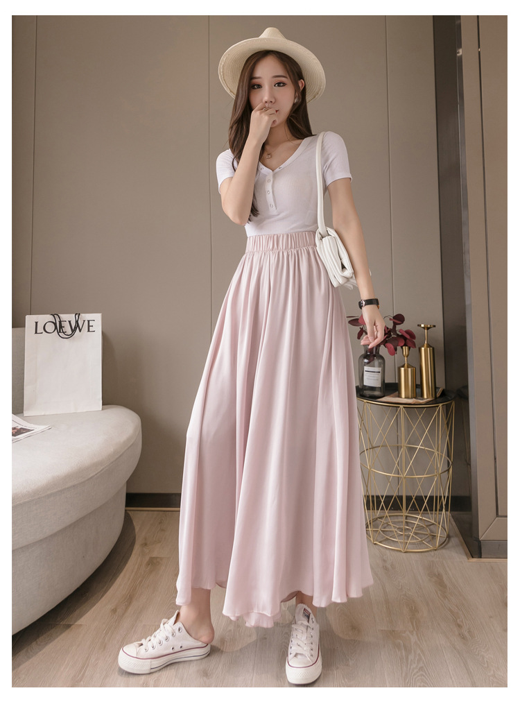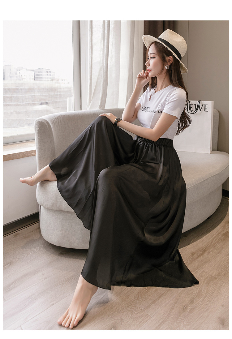 实拍 雪纺阔腿裤女休闲拖地裤高腰直筒裤度假沙滩裤裙裙裤女