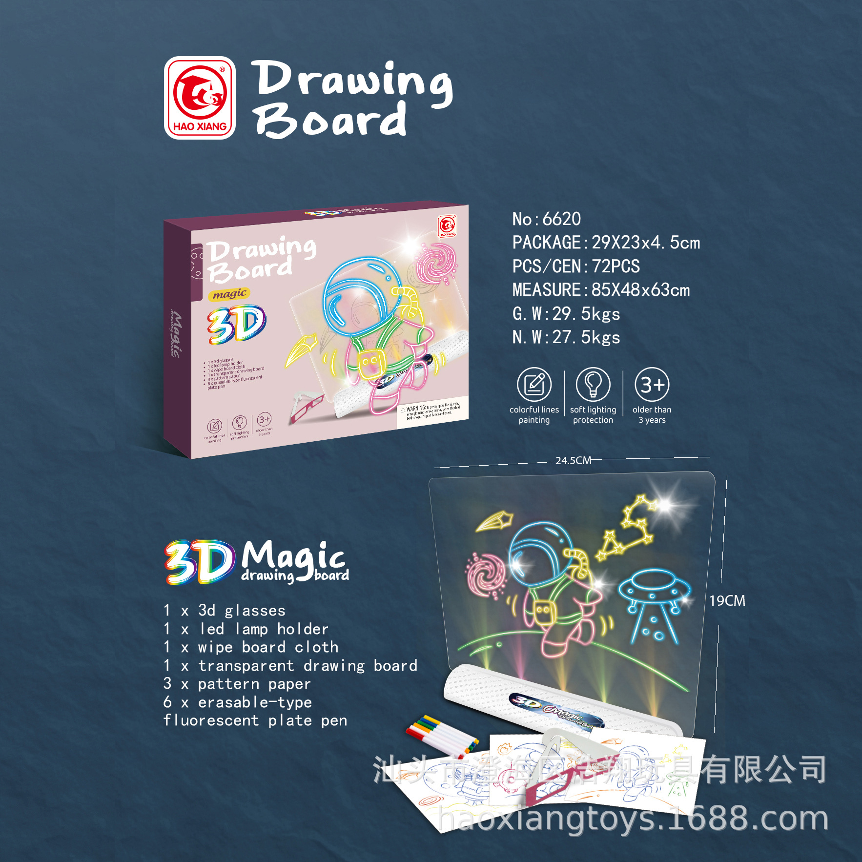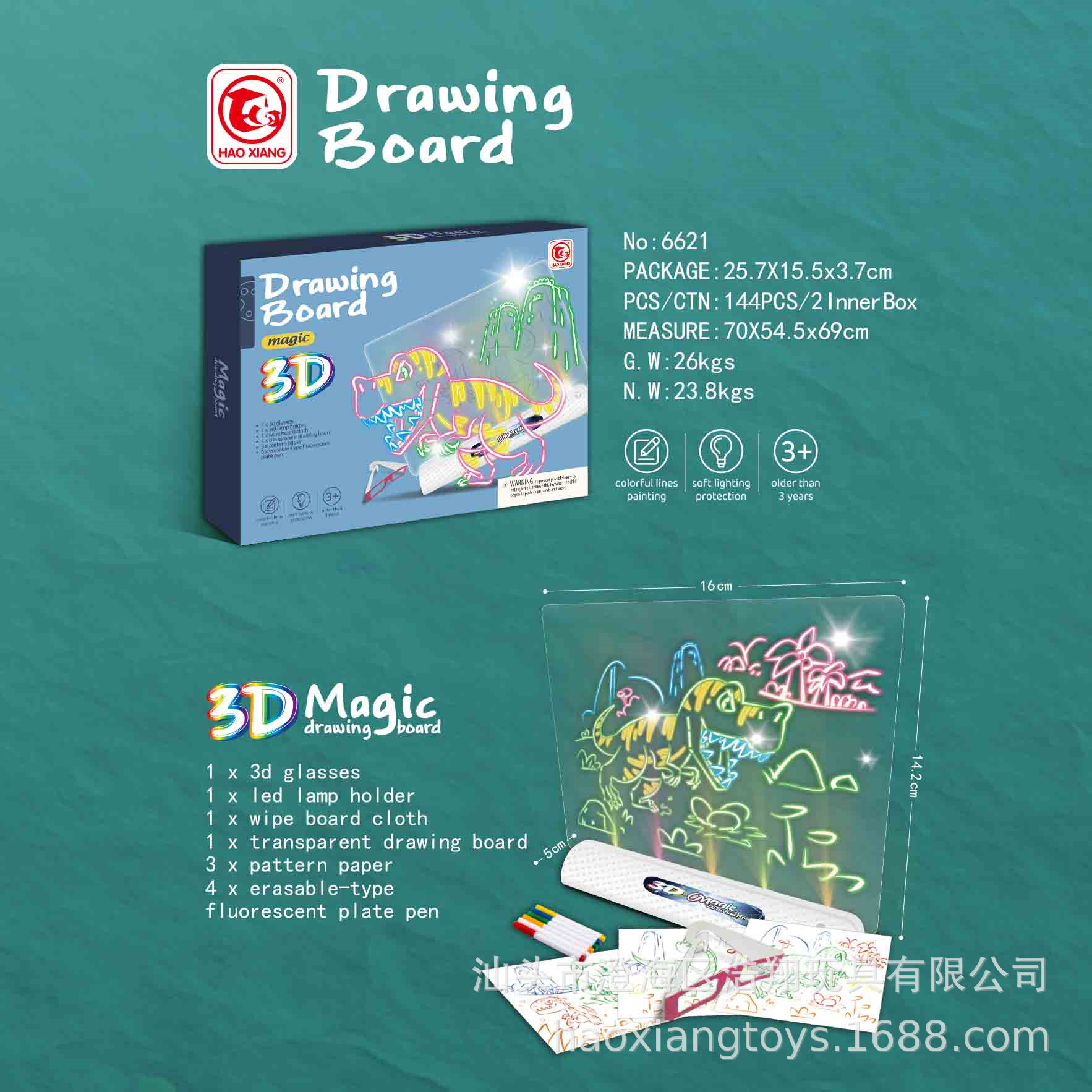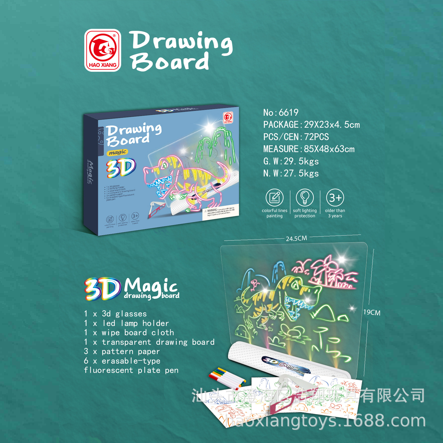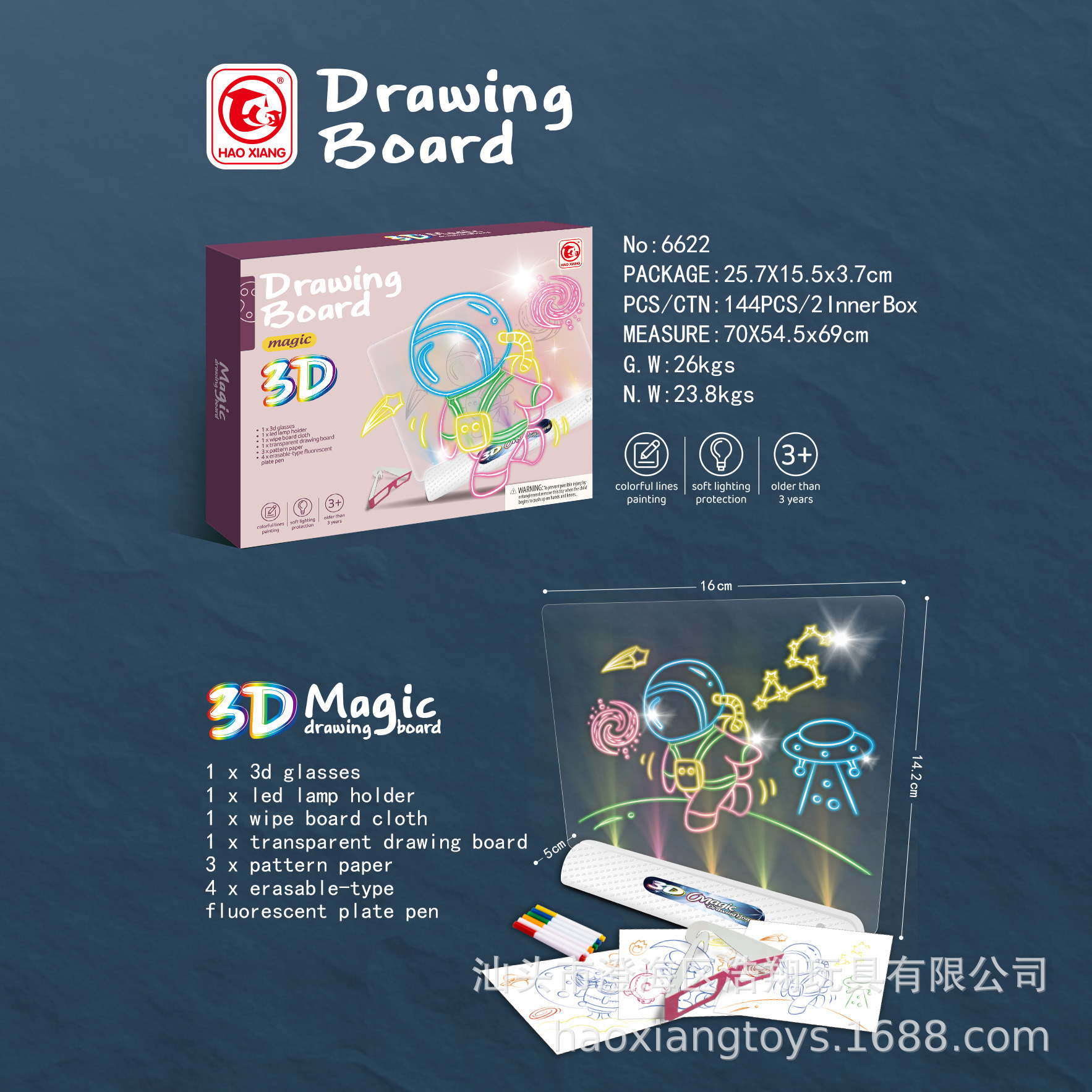 新品3D荧光绘画板RGB发光玩具led儿童魔术写字涂鸦板跨境工厂