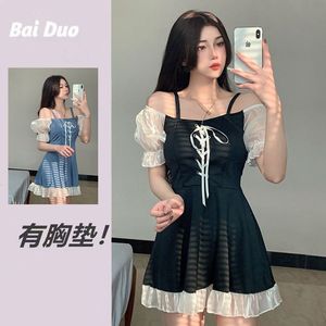 涤纶加肥加大码胖MM连体裙式款平角裤泡温泉泳装游泳衣130-200斤