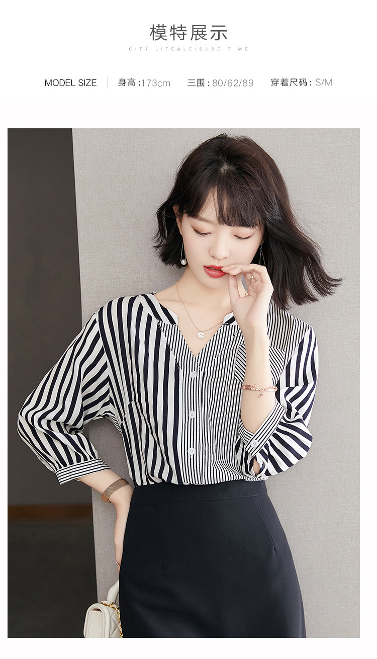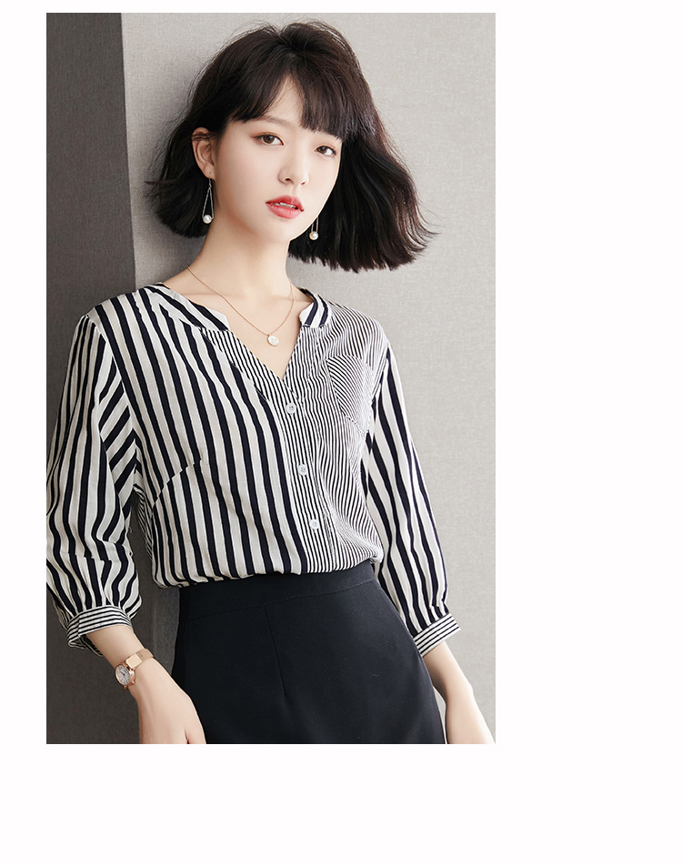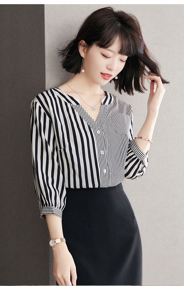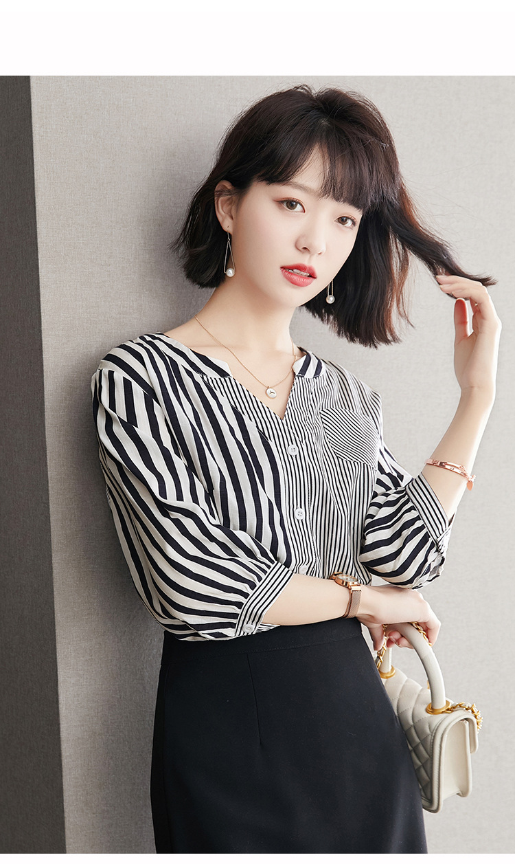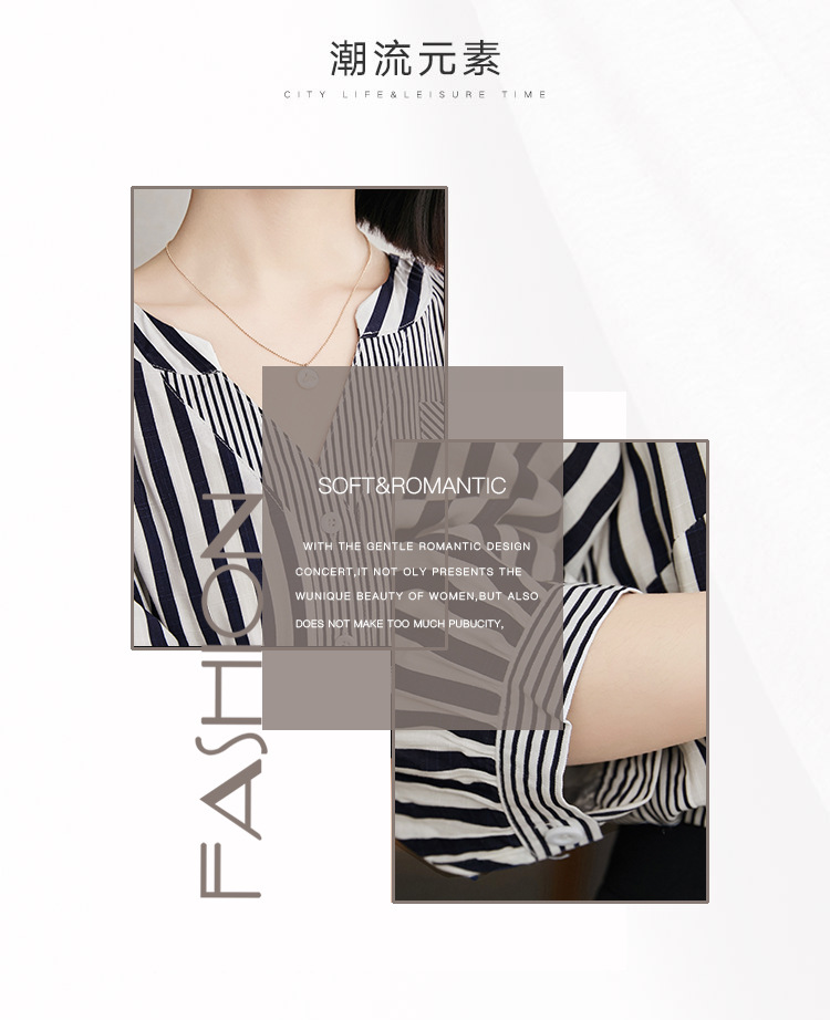 2022新款不规则条纹短袖衬衫女夏小众设计感立领衬衣韩版宽松上衣