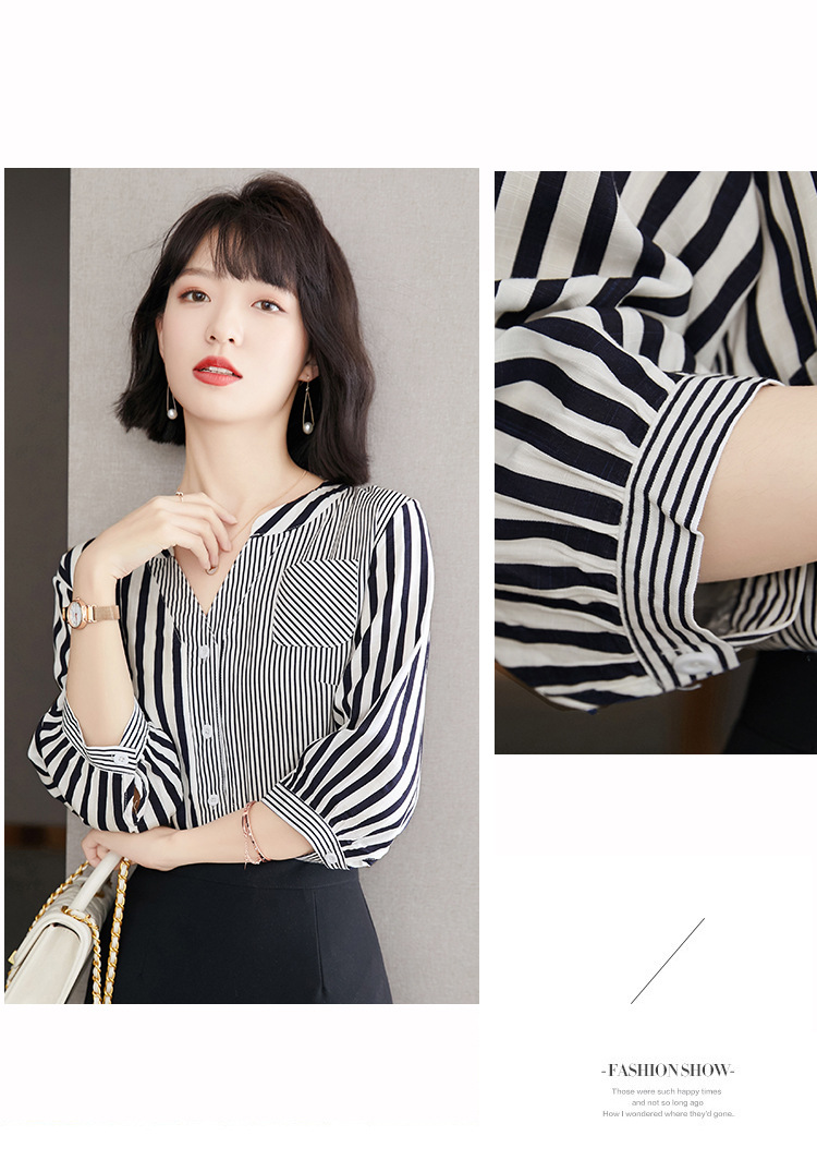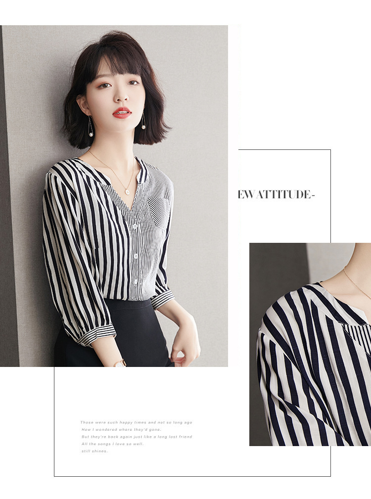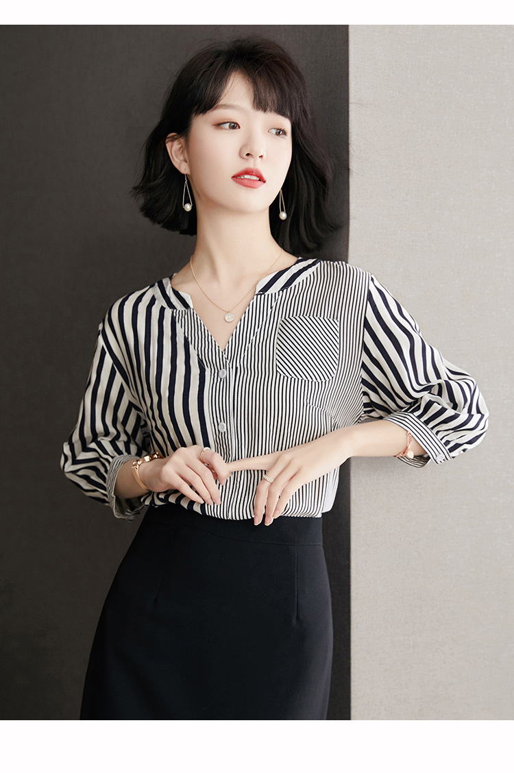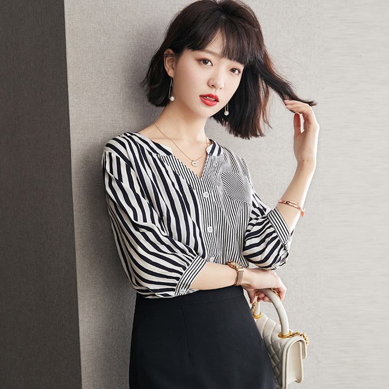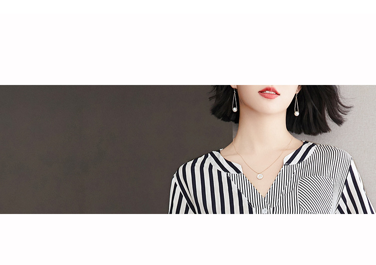 2022新款不规则条纹短袖衬衫女夏小众设计感立领衬衣韩版宽松上衣