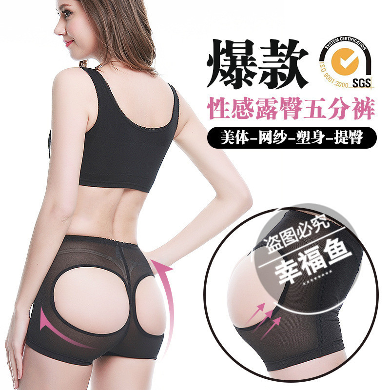 外单供应露臀提臀裤新款网纱透气弹力平角裤露pp四角裤翘臀轻薄