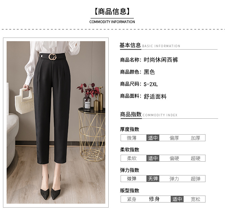 欧洲站西装裤女直筒高腰九分宽松显瘦修身小脚休闲小西裤哈伦裤夏