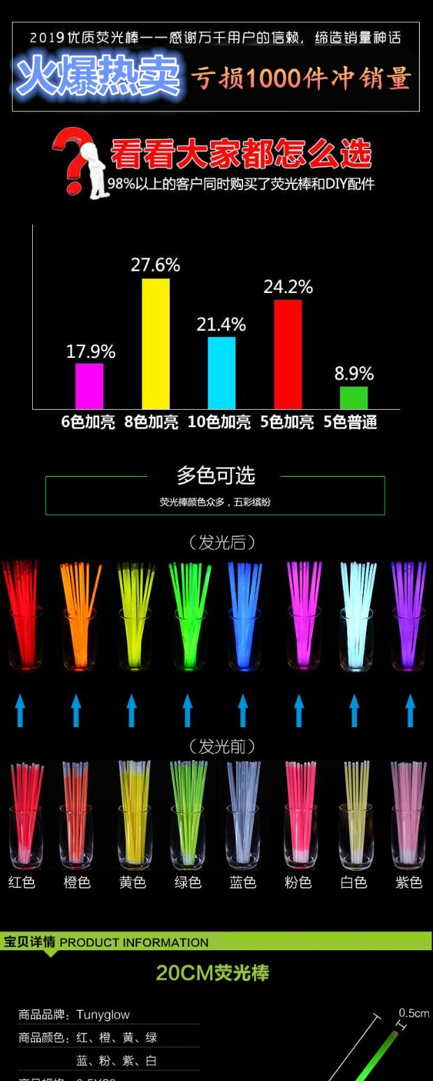 荧光棒批夜发光应援手环一次性儿童玩具创意舞道演唱会银光棒手镯