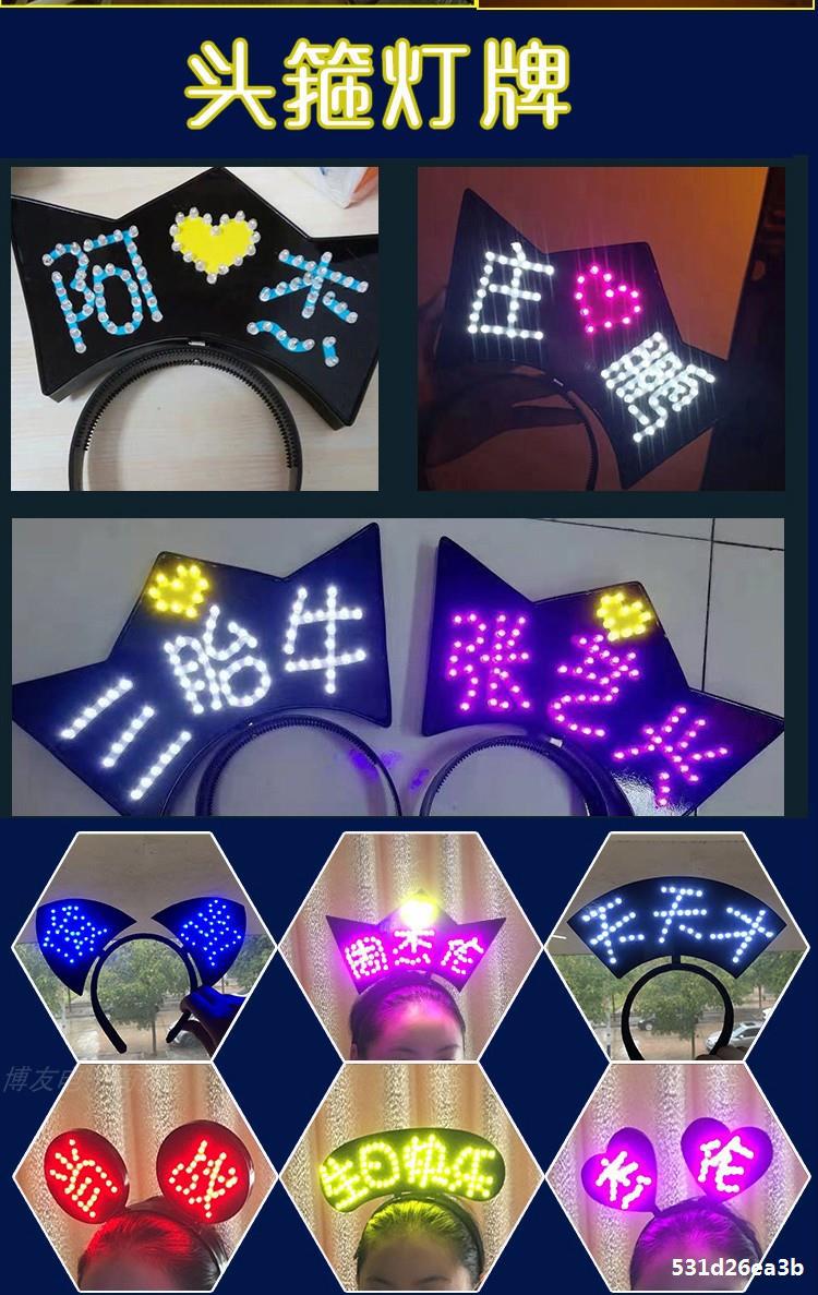 明星演唱会灯牌LED发光手举牌头带发箍diy歌迷粉丝求婚应援牌