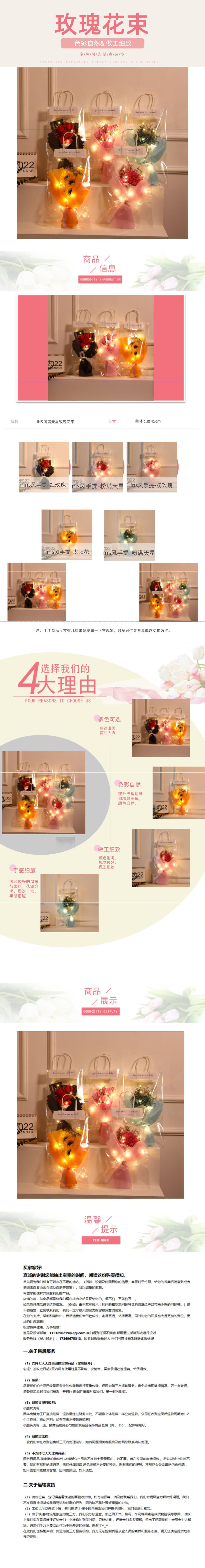 手工玫瑰花绿植情人节粉色成品家里女友永生花批发发光花卉小玫瑰