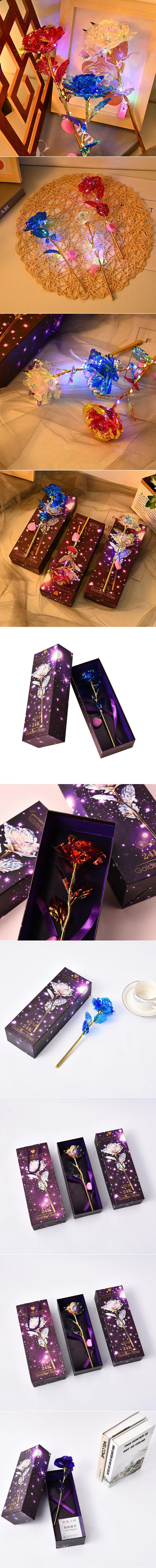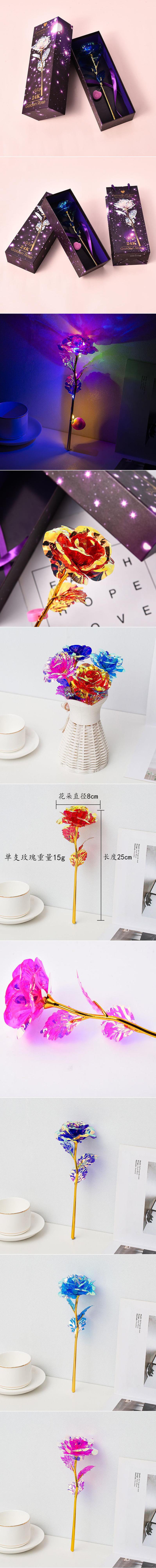 发光彩色金箔花24k玫瑰花永生花生日520七夕情人节母亲节创意礼物