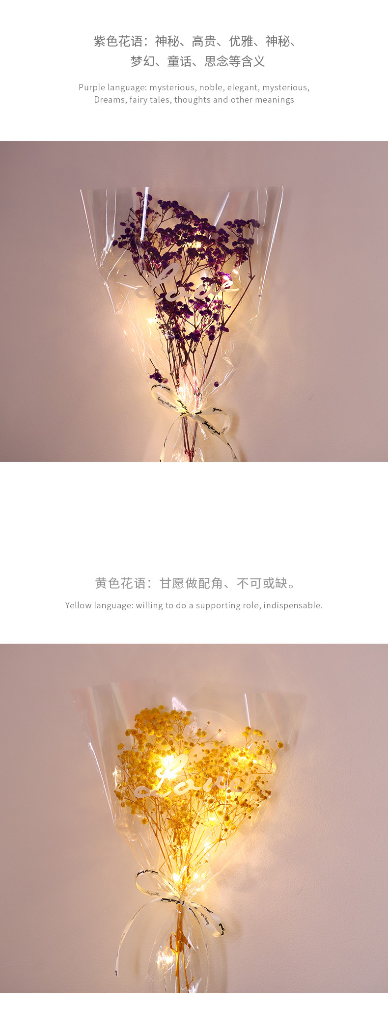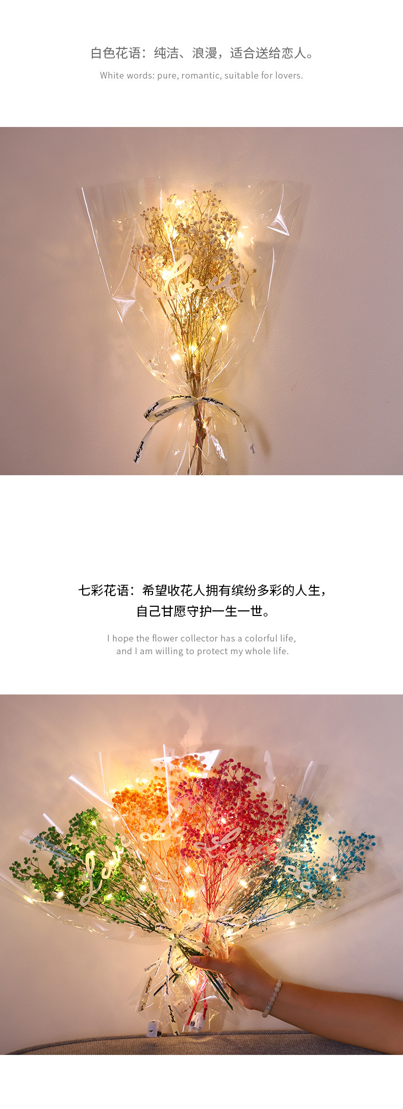 发光花束满天星干花地摊货源夜市成品单枝永生花七夕礼物商场活动