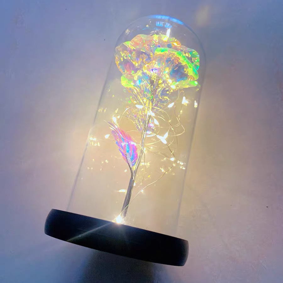 仿真花金箔玫瑰花玻璃罩发光情人节生日礼物送情侣闺蜜妈妈亚马逊