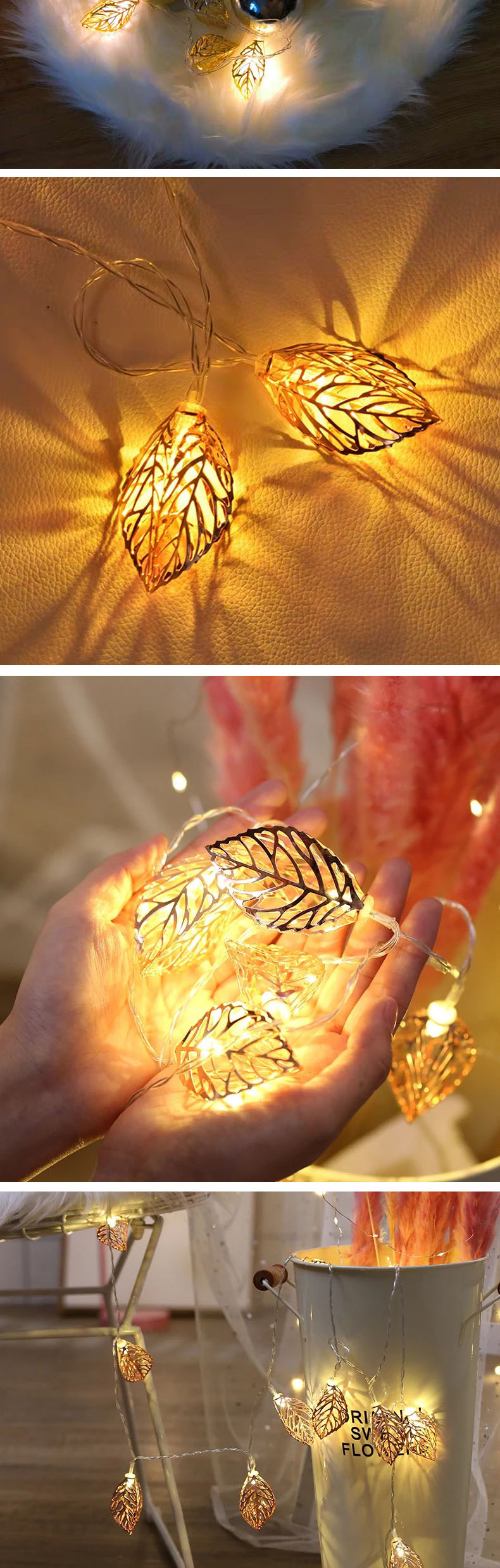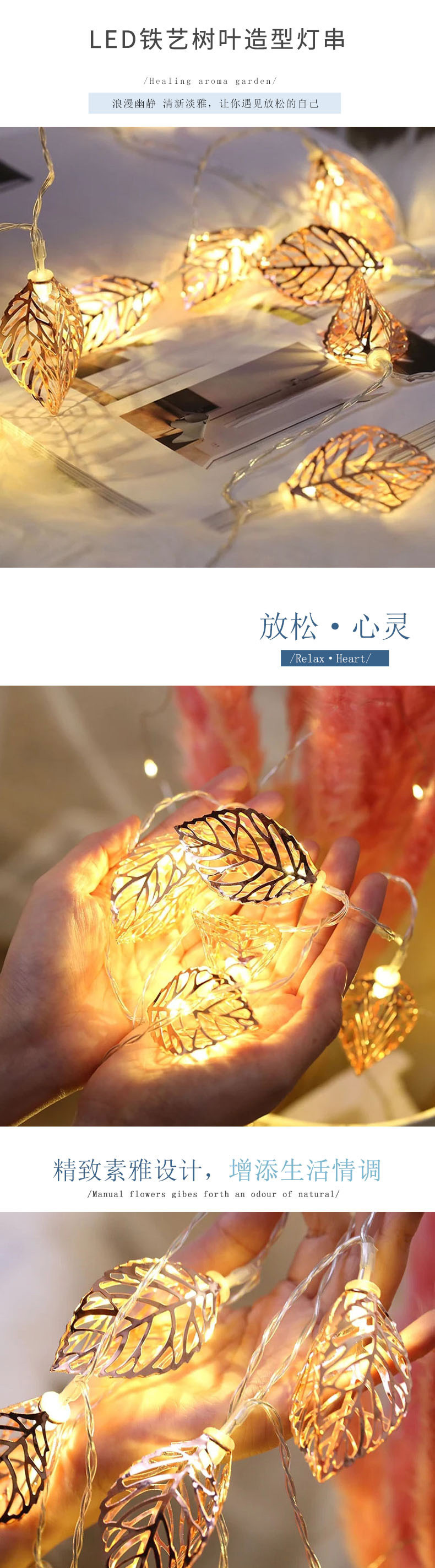 LED铁艺树叶羽毛节日彩灯庭院派对装饰彩灯挂件ins亚马逊厂家直销