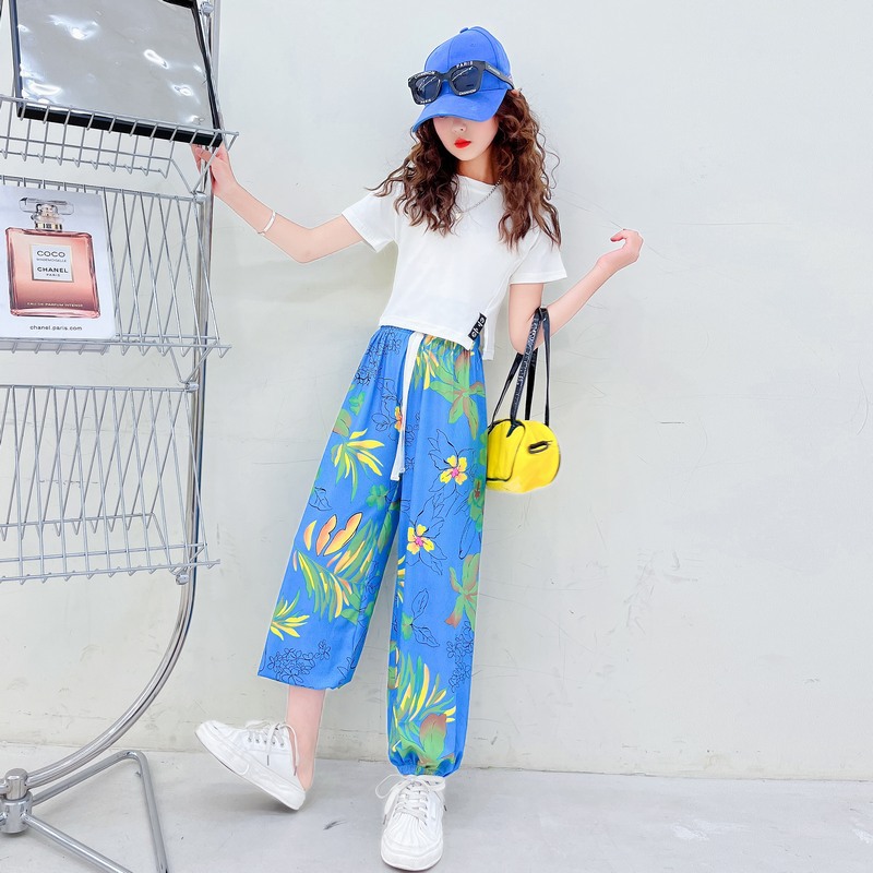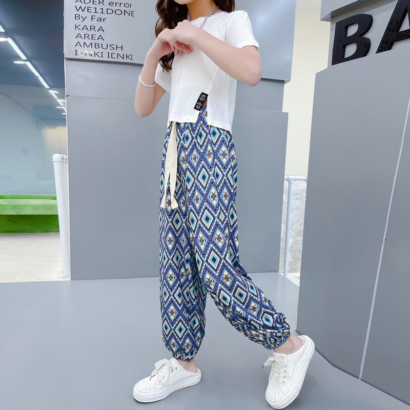 女童裤子夏季薄款冰丝大童洋气夏装宽松速干防蚊裤束脚儿童运动裤