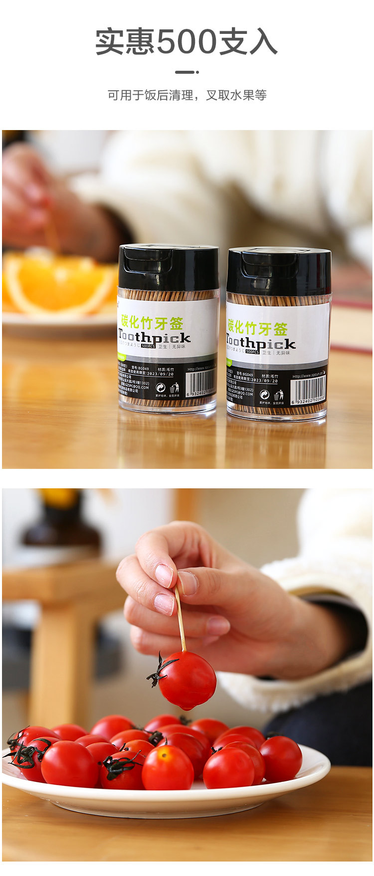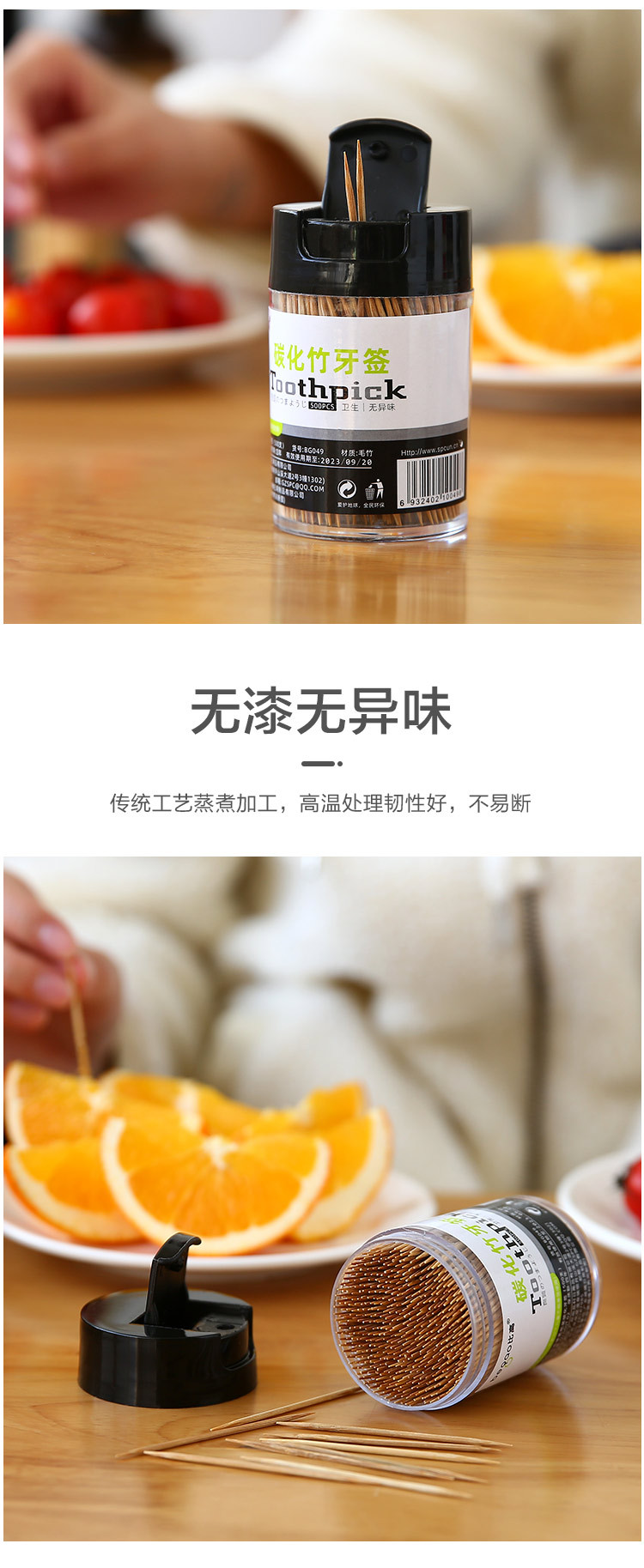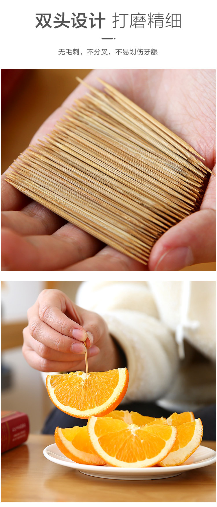 家用碳化牙签 一次性水果叉竹制盒装水果签 创意筒装双头细牙签