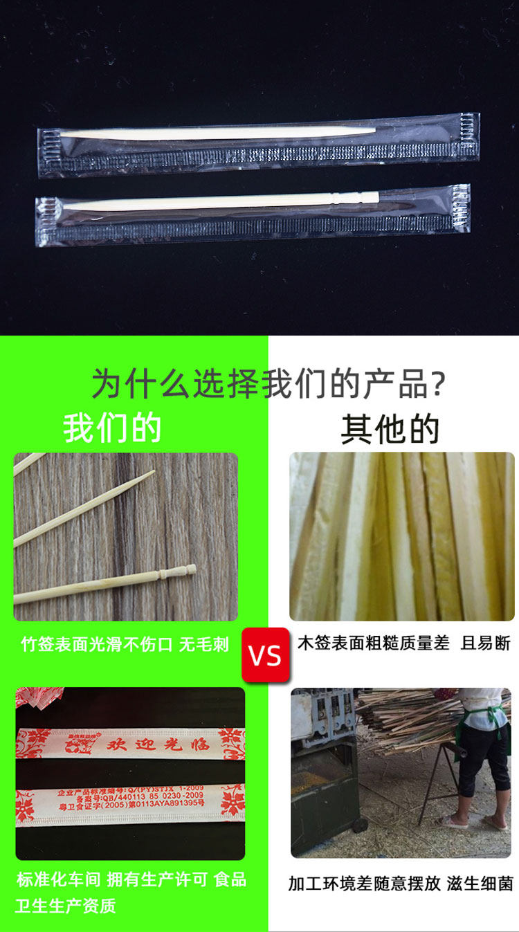竹制小包装牙签 独立包装 双头单头透明小袋装1000包家用餐厅打包