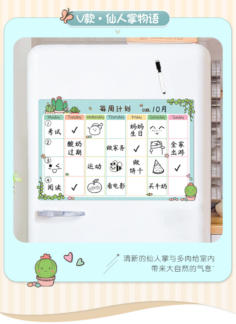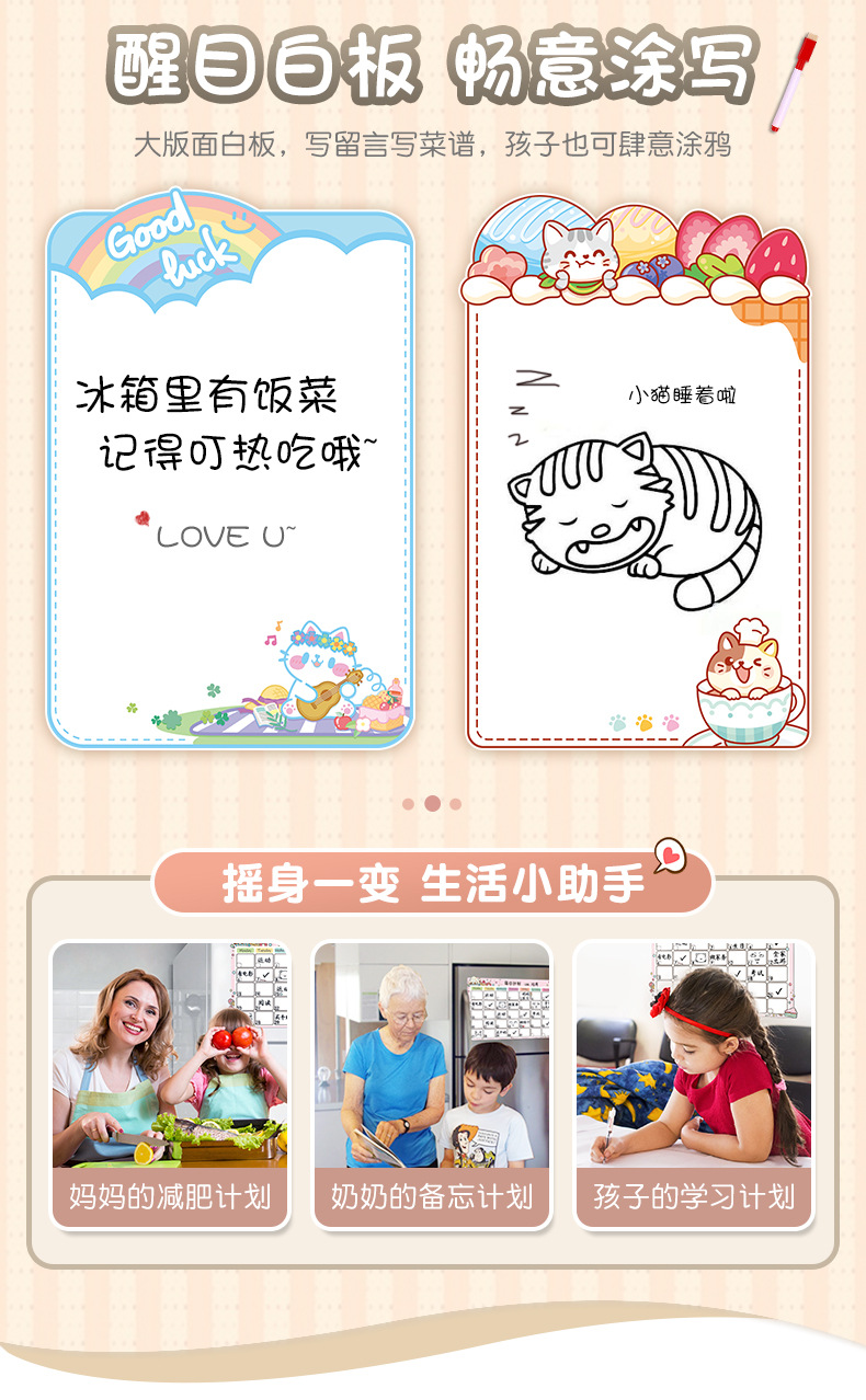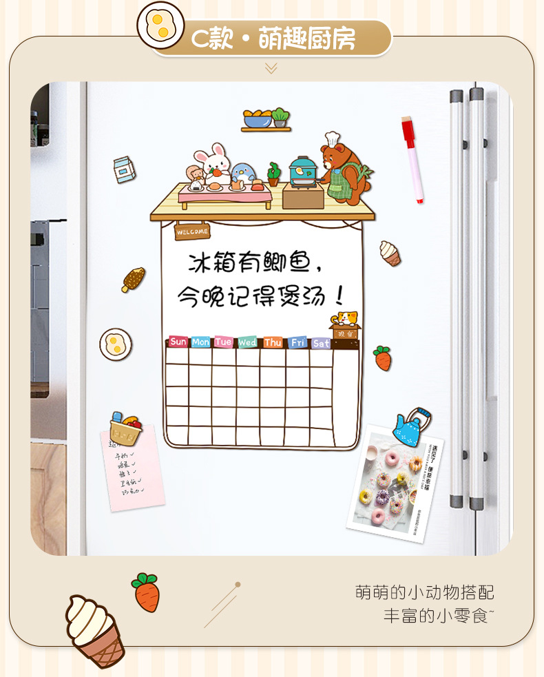 冰箱贴磁贴3d立体磁力留言贴可擦写 冰箱装饰创意黑板记事板