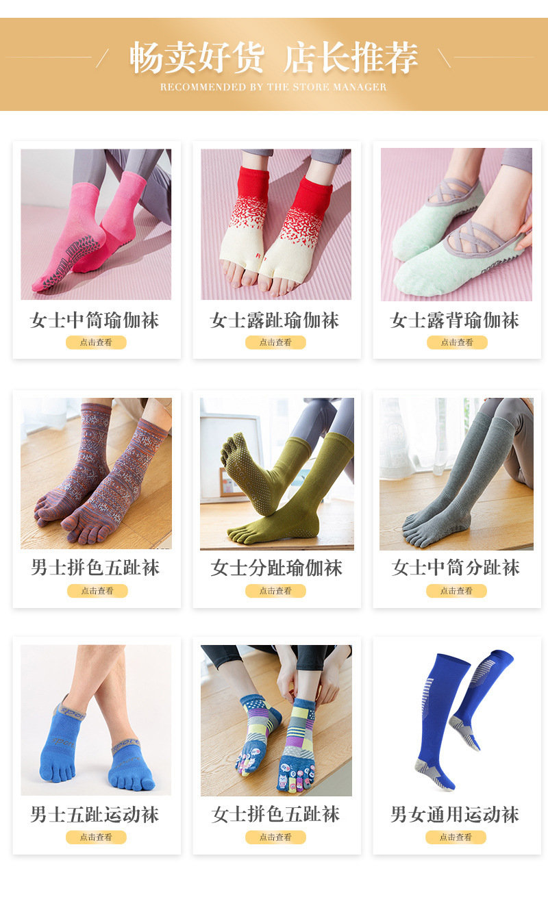 普拉提瑜伽袜子女中筒 点胶防滑底露趾露跟分趾袜透气堆堆袜夏季