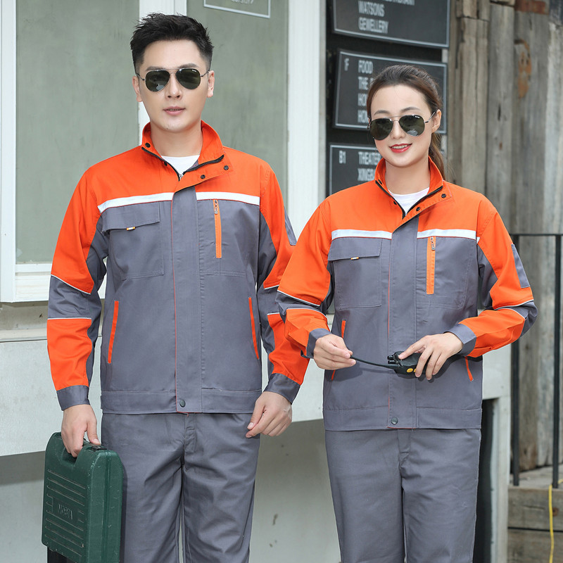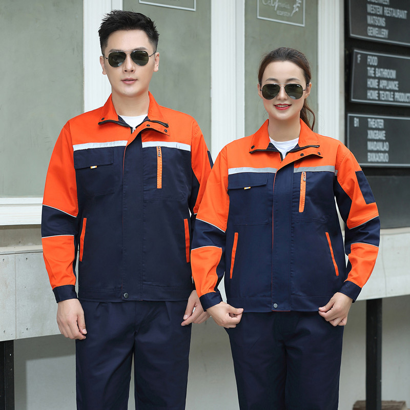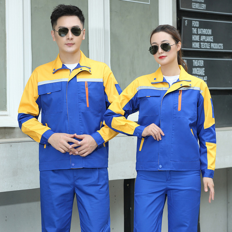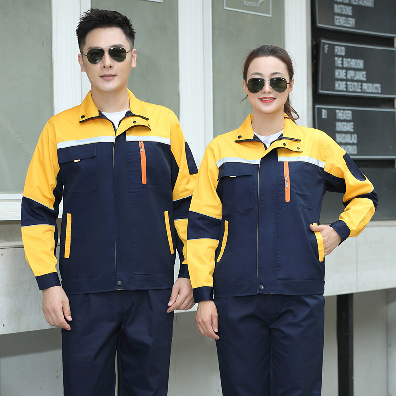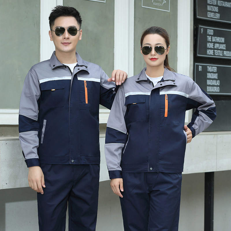厂家供应春秋长袖工作服套装工厂服维修汽修服劳保服耐磨上衣定制
