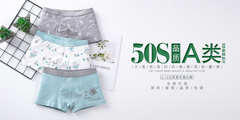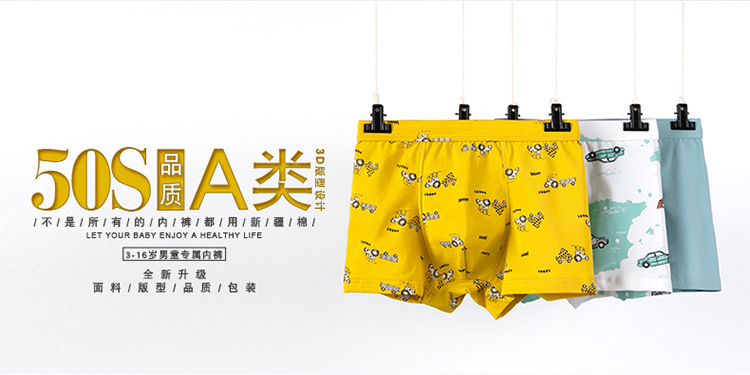 男童内裤儿童纯棉50支平角裤男孩四角短裤中大童三角内裤儿童卡通