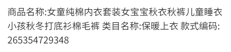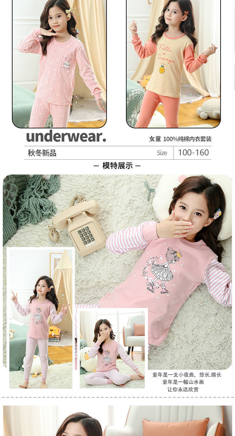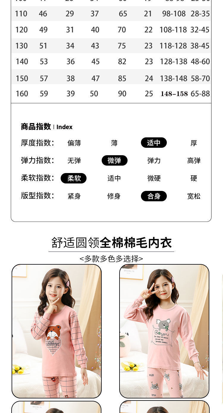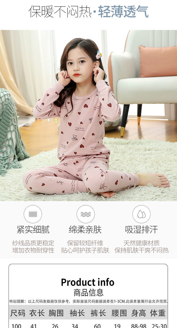 女童纯棉内衣套装女宝宝秋衣秋裤儿童睡衣小孩秋冬打底衫棉毛裤