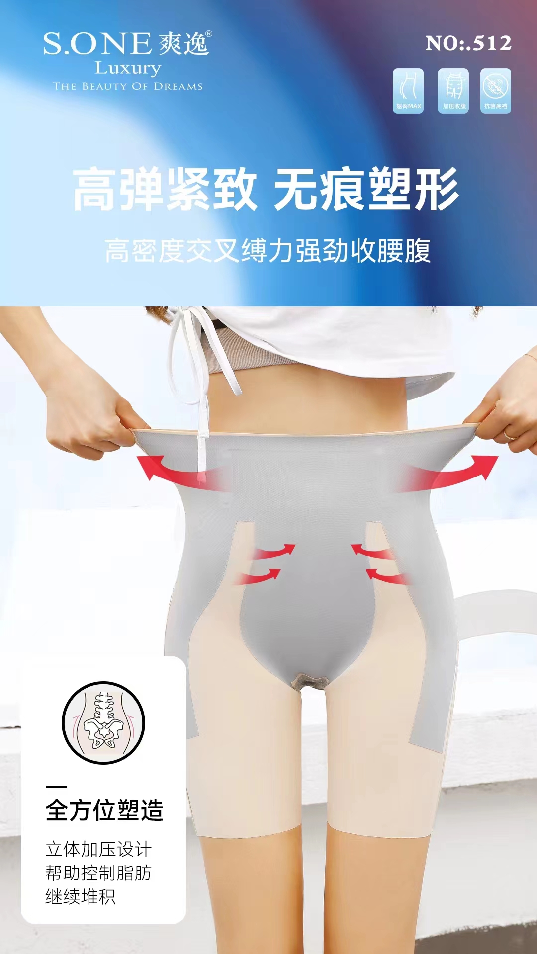 爽逸6D动感磁力收腹提臀裤内裤+安全裤二合一采用进口轻奢级纱