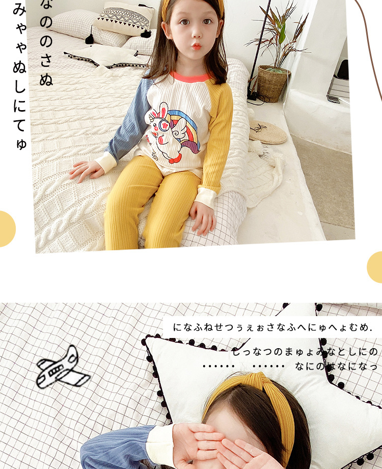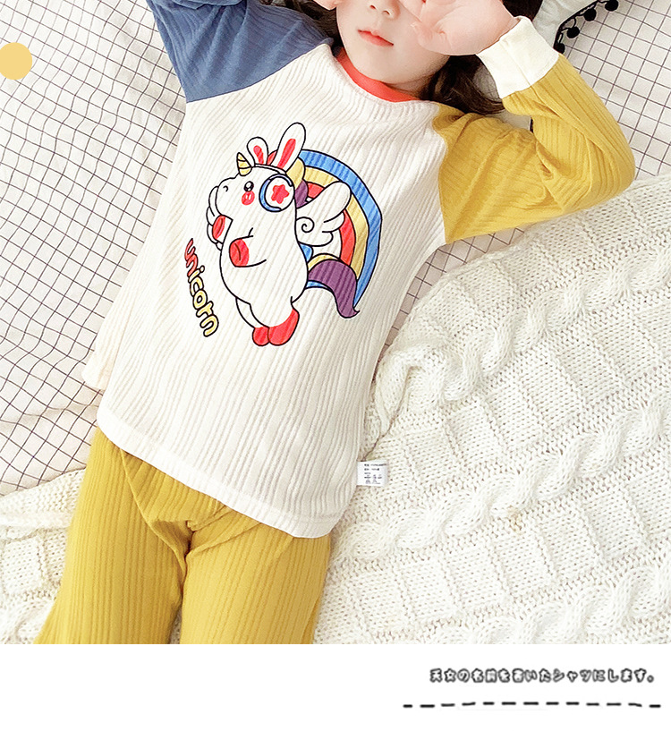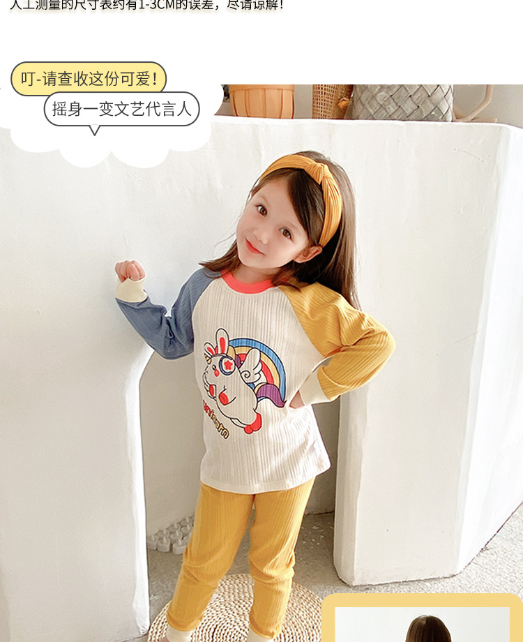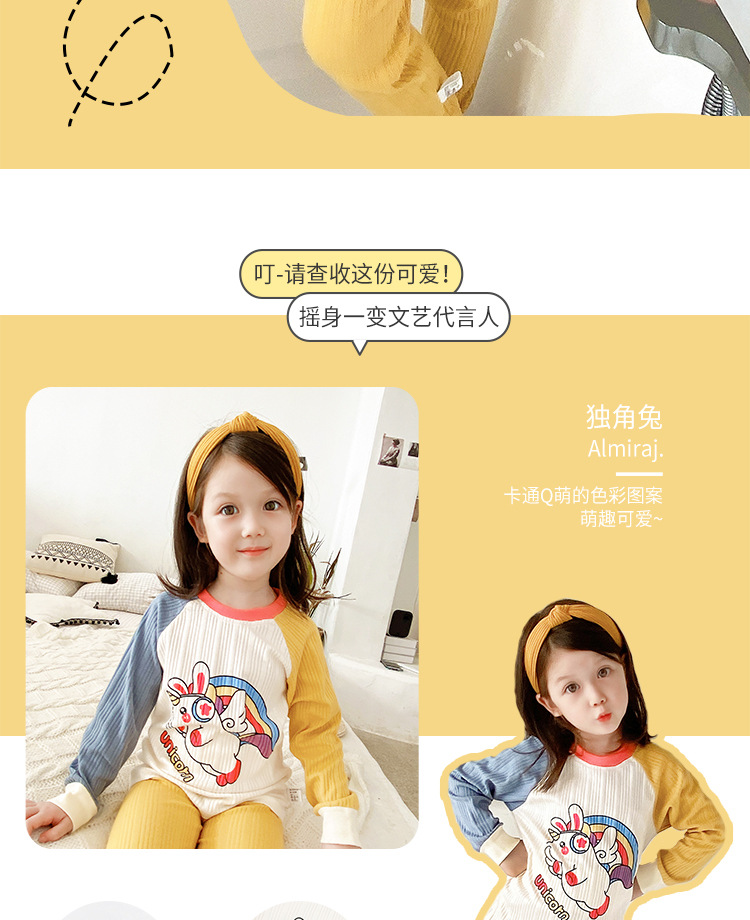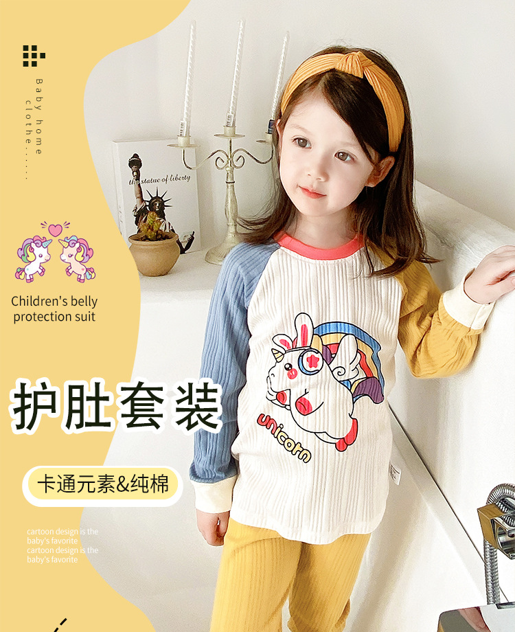 2021年新款儿童家居服内衣睡衣宝宝长袖卡通春秋季抽条棉护肚套装