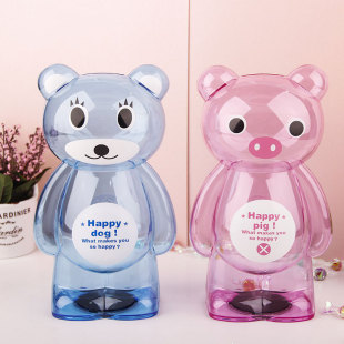 创意可爱卡通透明塑料小熊存钱罐银行学校促销宣传礼品儿童储蓄罐