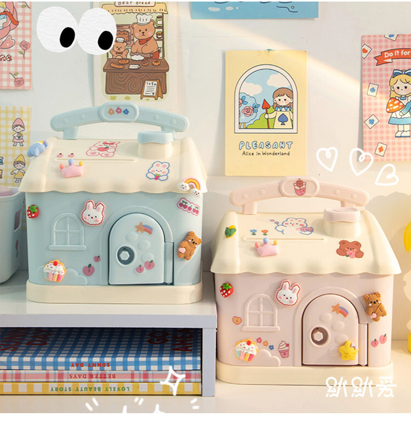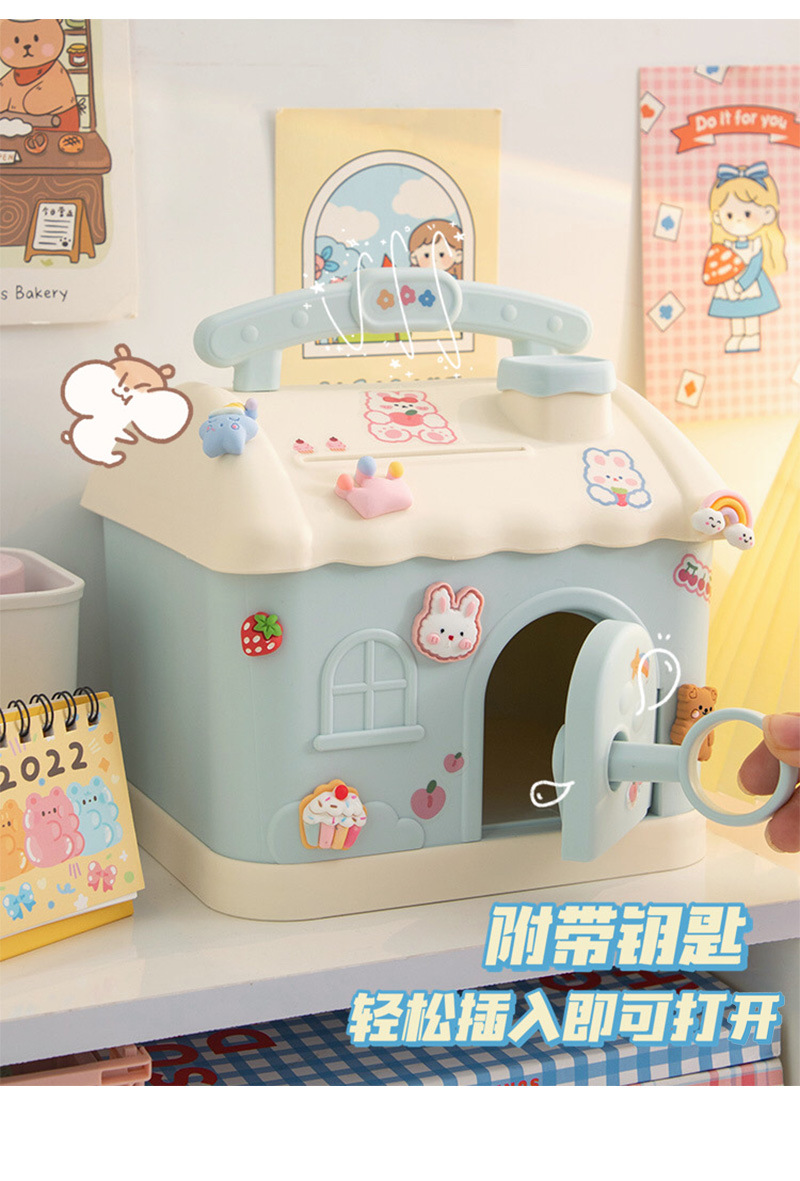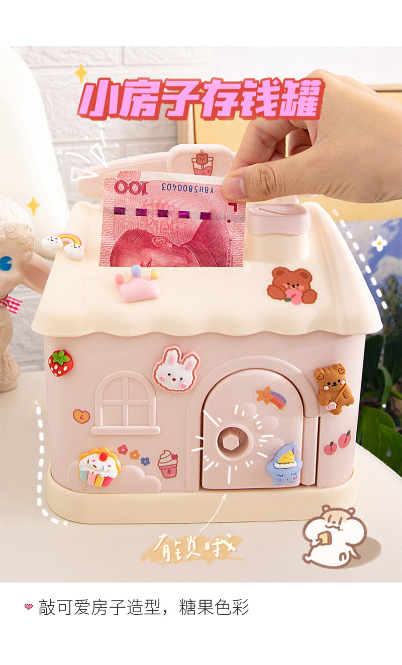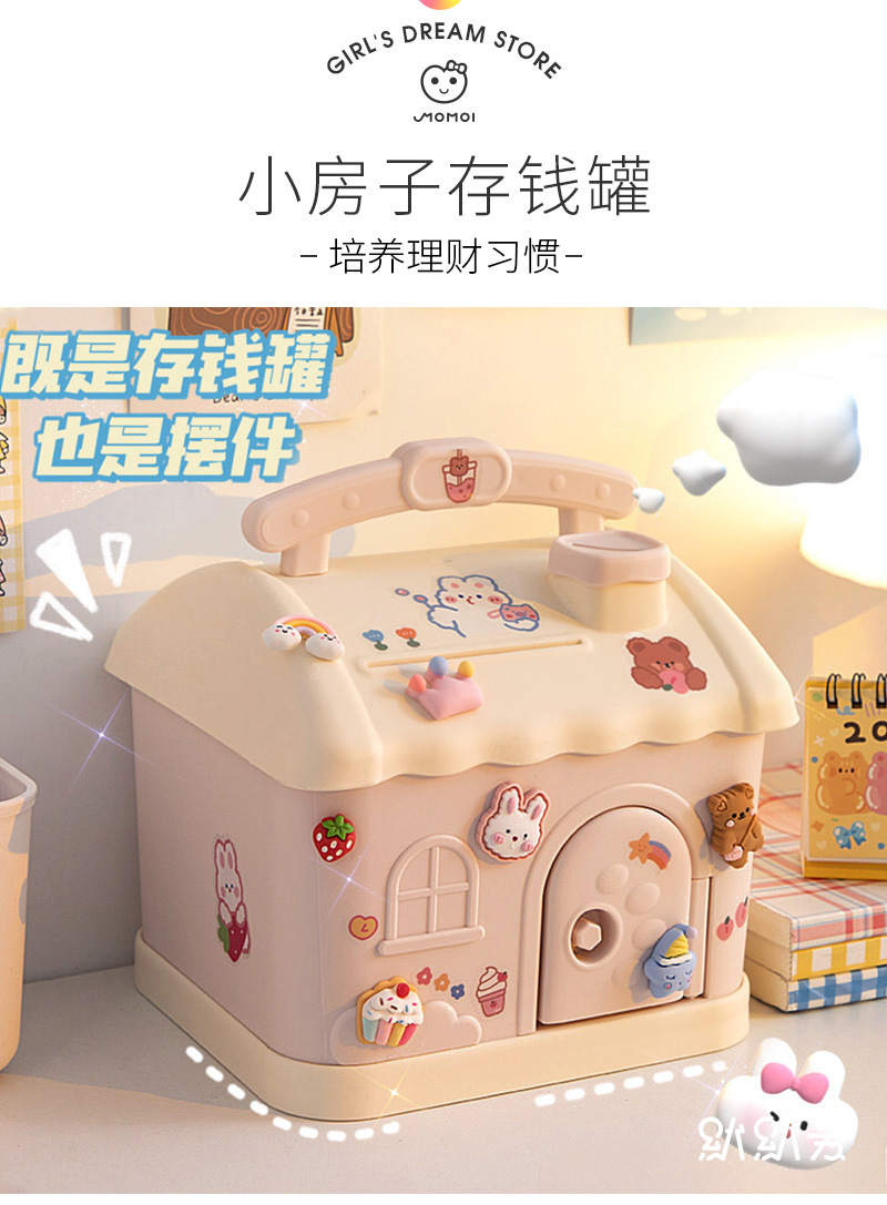 可爱女孩塑料储蓄罐存钱零钱儿童带锁装硬币储钱罐客厅卡通款摆件