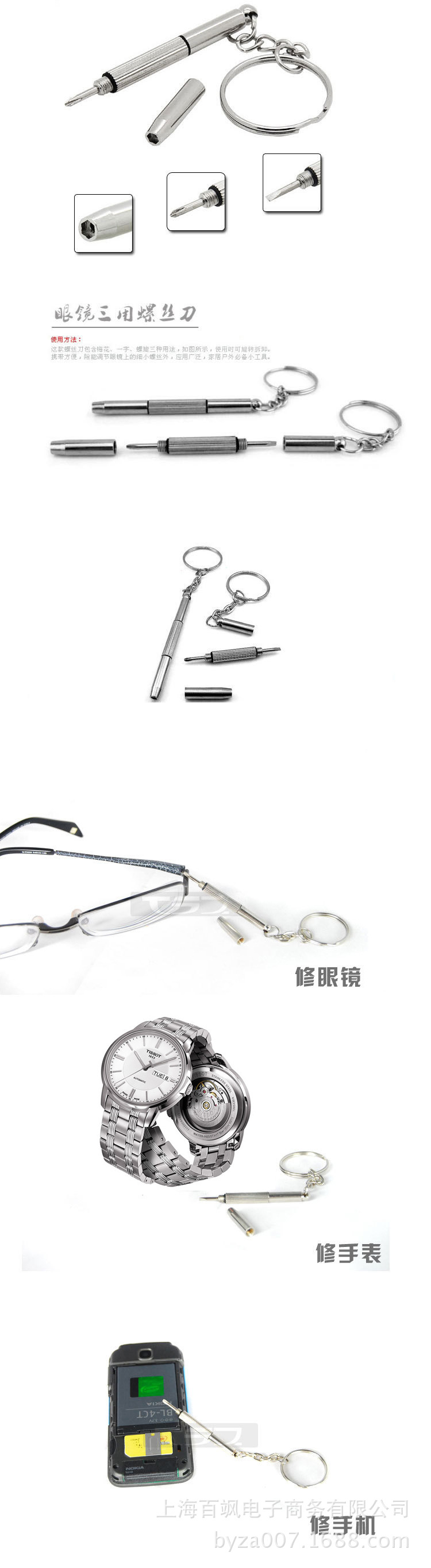 眼镜螺丝刀便携式多功能三合一小螺丝刀眼镜手表手机三用维修工具
