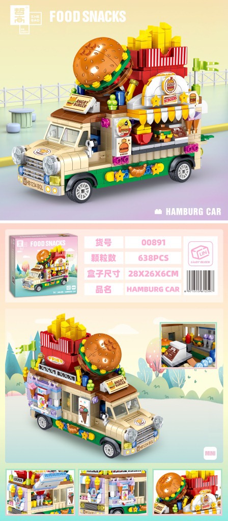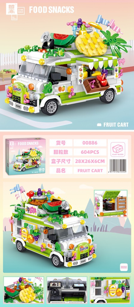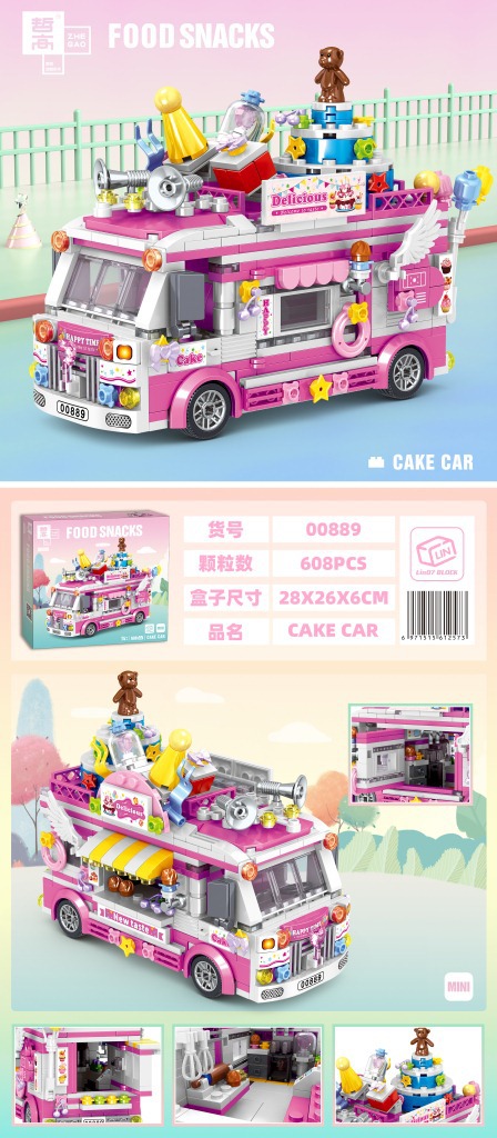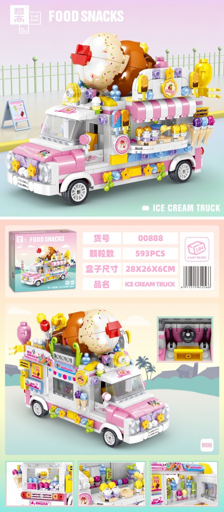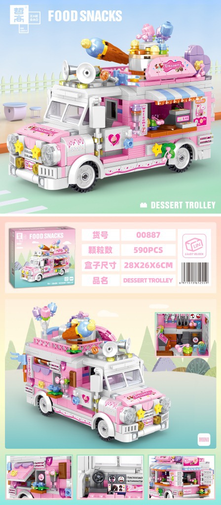 哲高MIN 00886-00891 00306-00310冰淇淋车奶茶车婚纱车积木玩具